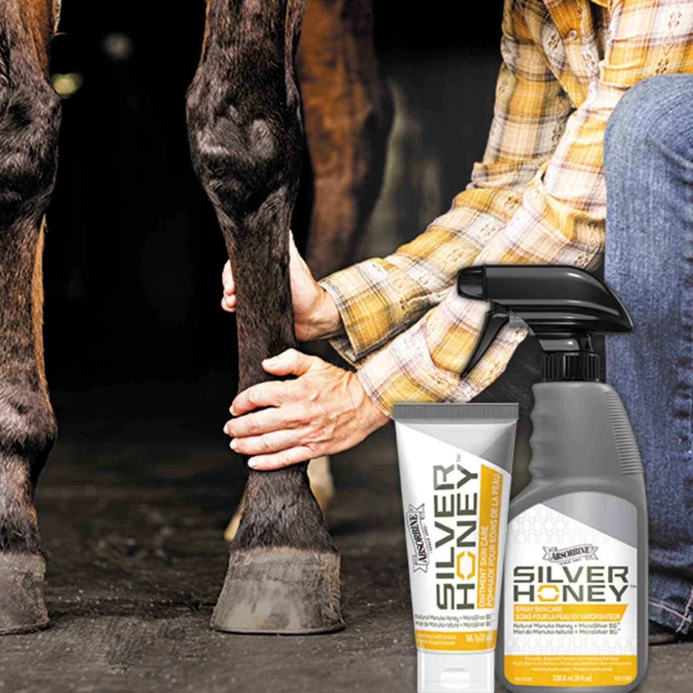 The first product to combine the natural power of Manuka Honey and MicroSilverâ„¢ BG, Silver Honey Rapid Wound Repair is made with all natural ingredients to be gentle on skin. Its revolutionary formula moisturizes the treatment area as it works to soothes irritated or sensitive skin. It also supports the natural defenses of the skin and can help improve skin health to keep your horses, ponies and animal companions comfortable. Topical spray. 8 oz.