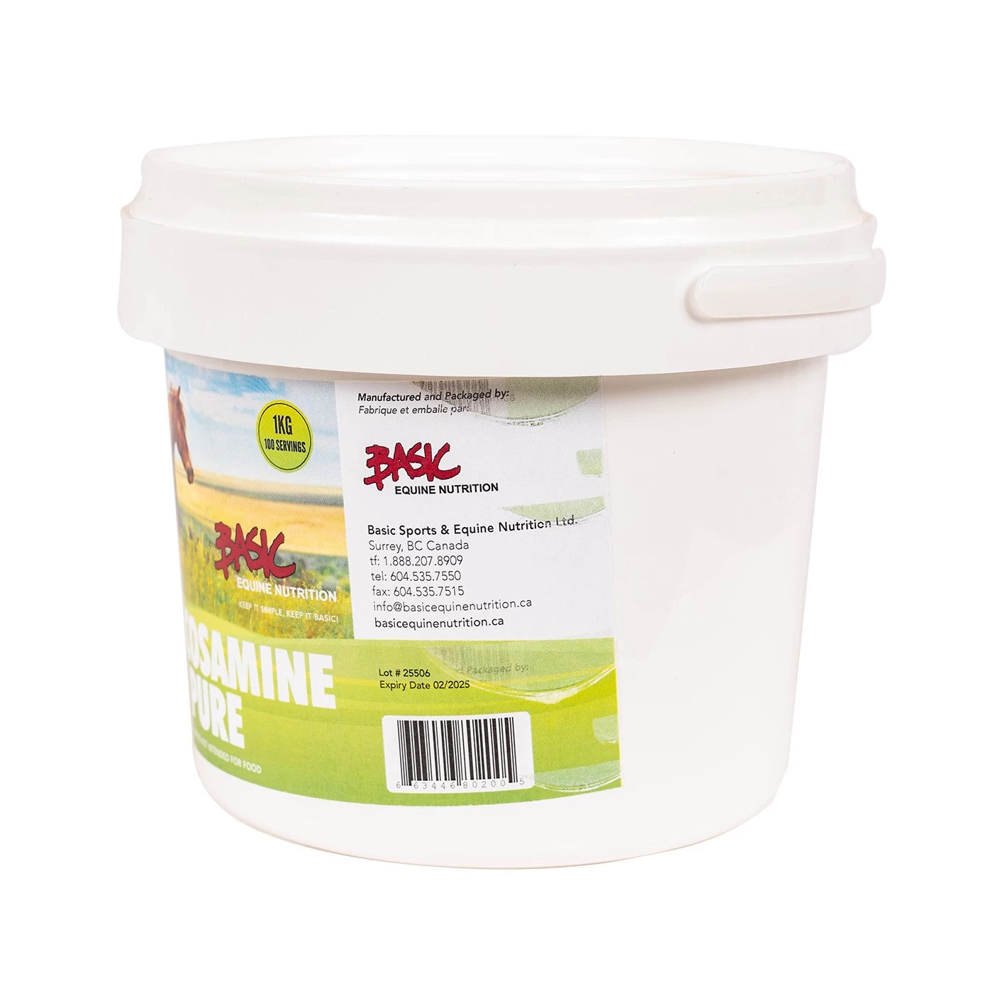Basic Equine Nutrition Glucosamine Pure helps to maintain healthy cartilage in your horse. Helps to promote joint health and function. Oral supplement in powder form.