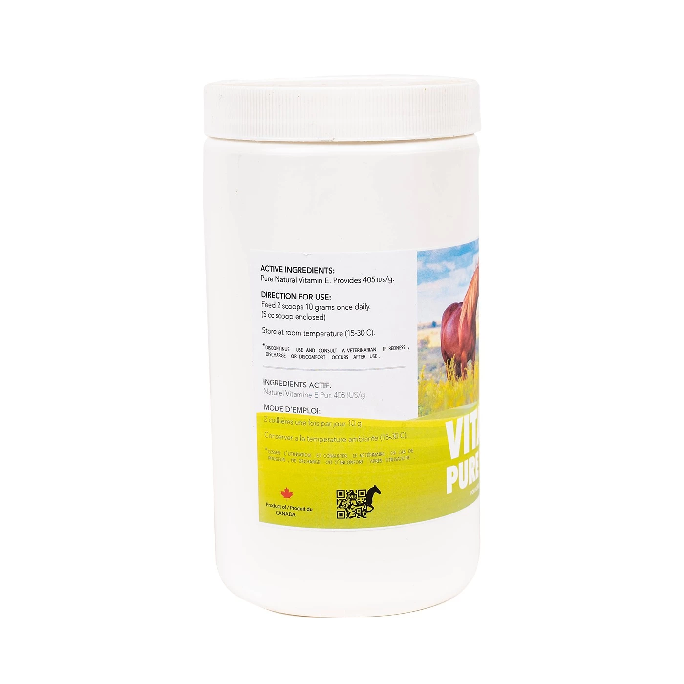 Powder equine supplement contains natural and pure Vitamin E (D-alpha-tocopherol acetate).