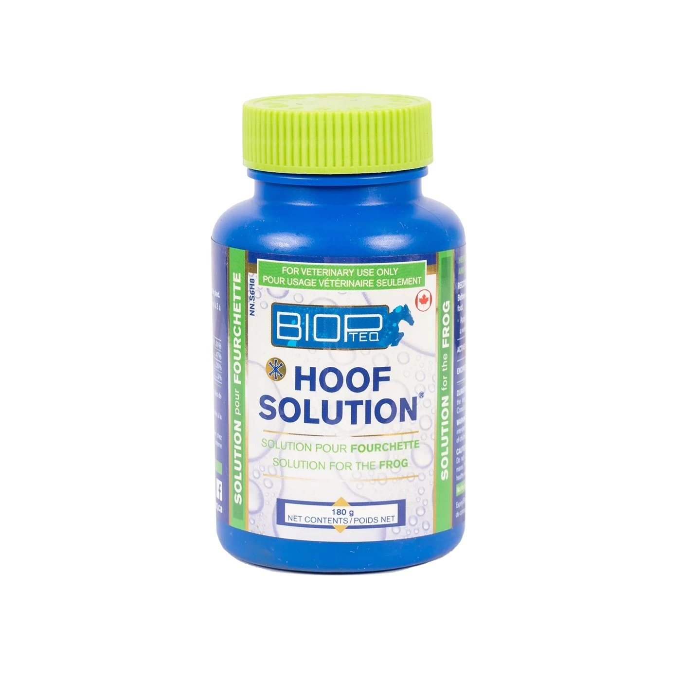 Help prevent the moisture and acidity of stable floors and bedding from affecting the soles and frogs of horses’ feet with BioP Teq’s Hoof Solution. Works quickly, as of the first application, as a means of aiding damage prevention or rehabilitation by acting like a bandage for 24 hours.