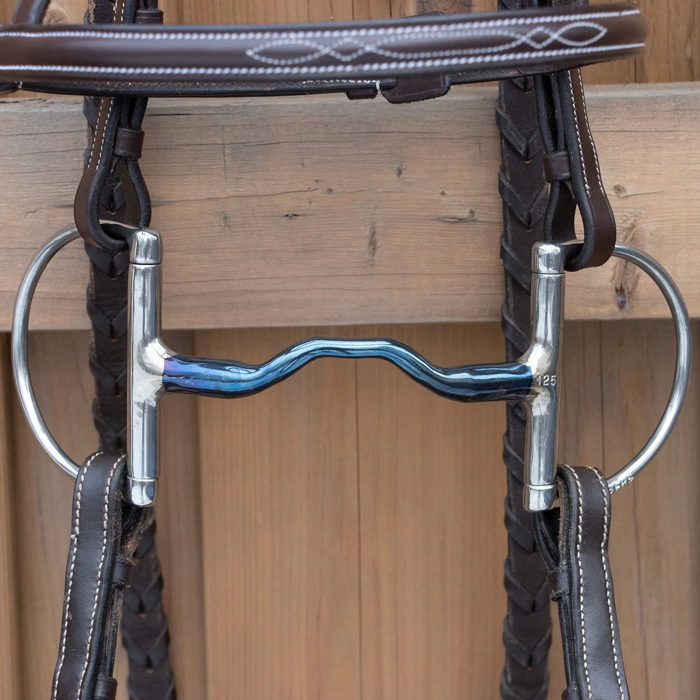 Designed with a medium port to allow space for the tongue, this bit helps relieve tongue pressure encouraging the horse to relax. This bit is often suited to horses with sensitive or large tongues that need more control than a regular snaffle can offer.