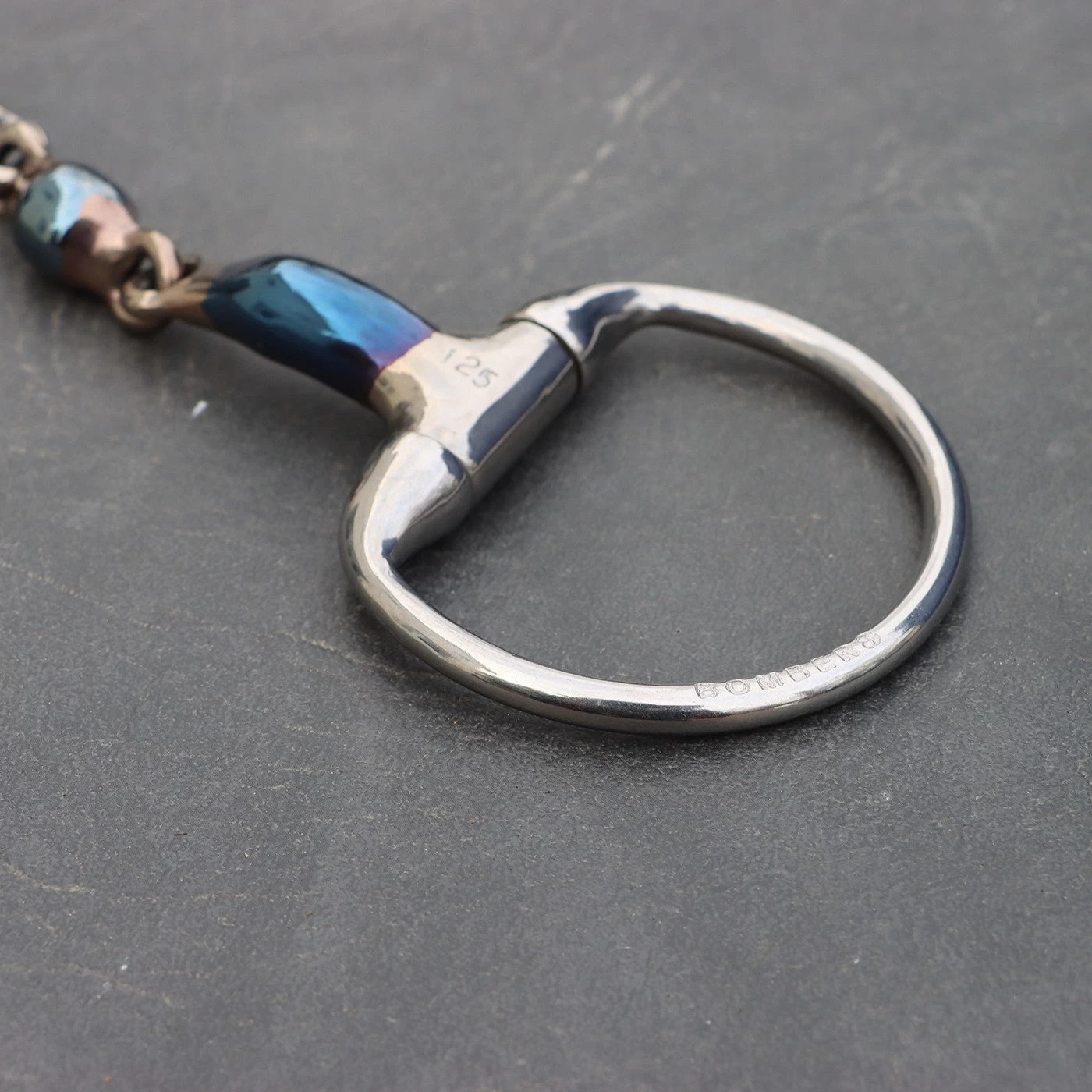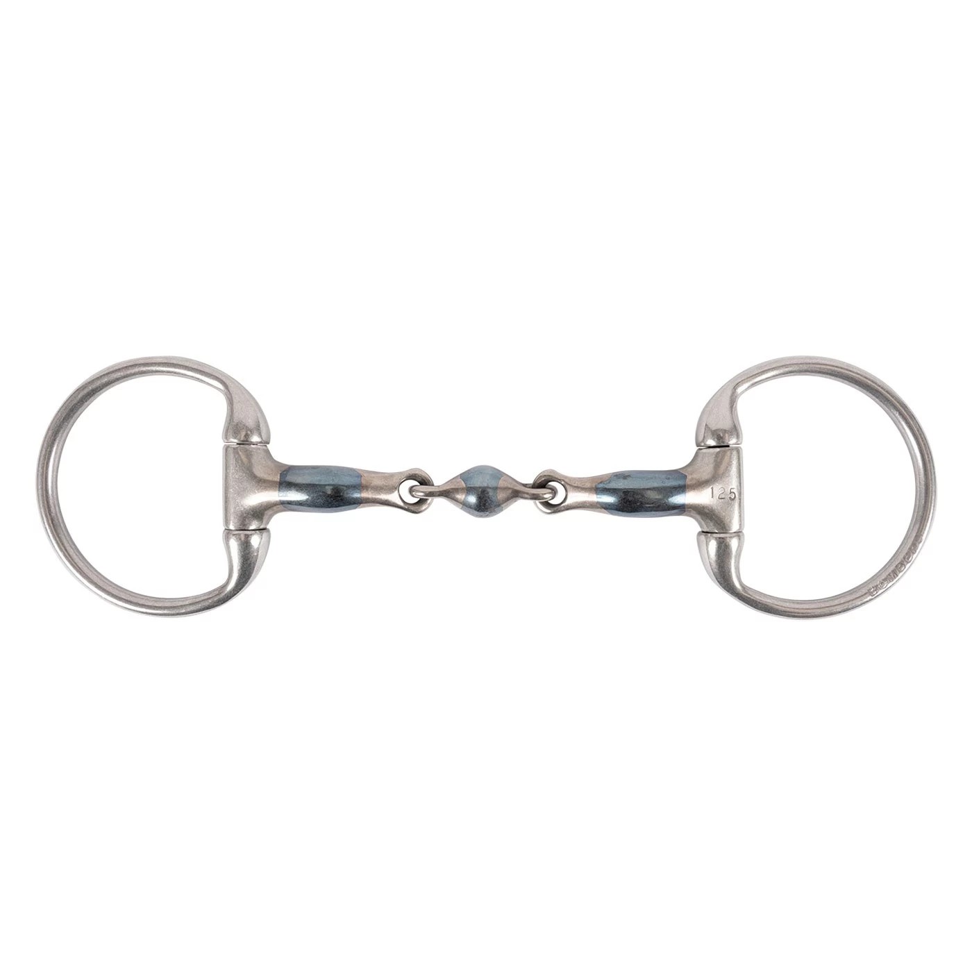 Crafted in blue sweet iron to help promote salivation for optimal comfort, the Bombers Eggbutt Elliptical Bit is designed to help provide a slower release and introduce mild poll pressure to your horse. The eggbutt cheekpieces help to prevent pinching on your horse’s lips and provide a more stable feel against the side of the face. The double-jointed mouthpiece features a flat middle lozenge joint to help prevent the horse pushing against the bit with his tongue.