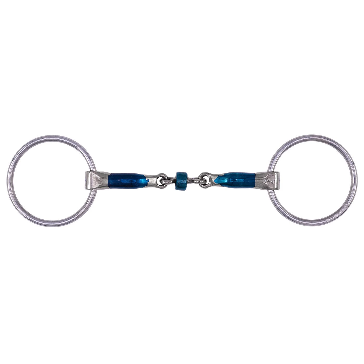 Featuring a 40mm roller, the Bomber Loose Ring Buster Roller bit increases tongue and bar pressure making this bit stronger than a traditional double-jointed bit. Combined with the loose ring feature, this bit allows for immediate release of pressure on the tongue and bars. The Loose Ring Buster Roller bit is made from blue sweet iron and is an ideal choice to help assist with a horse that tends to lean on the bit or a horse that tries to take hold of the bit.