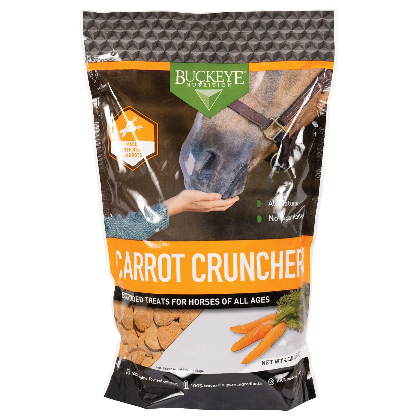 With no added sugar, Buckeyes All Natural Carrot Crunchers are the perfect nutritional reward. These treats do not contain additives, preservatives or any artificial flavoring. Made with natural flavours, your equine partner is sure to love these treats! Available in resealable bags.