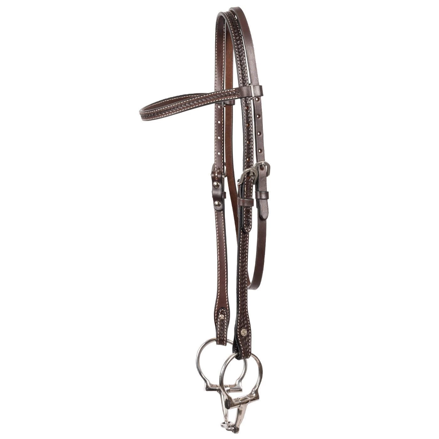 Classic and timeless traditional browband headstall features supple leather for an exceptional fit and feel. Classic basketweave tooling adds to the effortless western style. Reins sold separately.