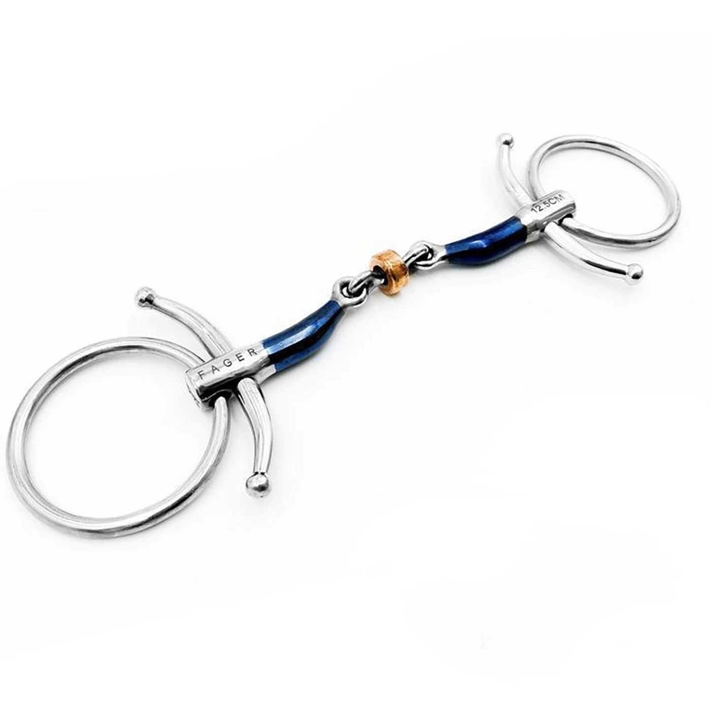 The Fager Julia Sweet Iron Baby Fulmer bit offers a double-jointed mouthpiece to help create space for the tongue while relieving pressure with a roller that reached further than the joints to help increase point-pressure on the tongue if your horse becomes heavy in your hand. Complete with a sweet iron and copper taste to assist with bit acceptance and Fager’s patented Baby Fulmer cheeks that are curved to avoid pressure on the horse’s face and to help keep the mouthpiece stable. Suitable for horses who lean/pull on the bit, or those who can be on/off in contact.