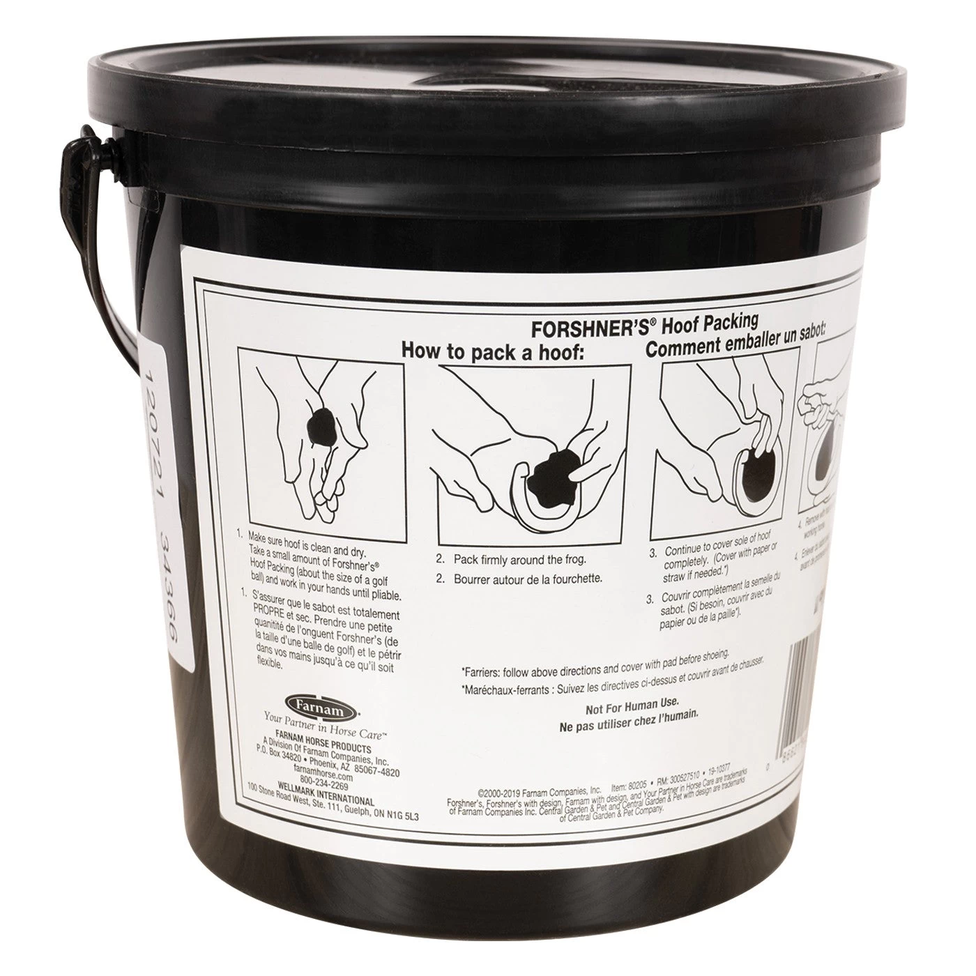 The original ready-to-use hoof packing is a farrier favorite because it flat-out works. Forshner’s Hoof Packing features the same great formula horse owners and horseshoers have depended on for over 25 years. It contains vital oils to help retain moisture and aids in the prevention of hardened frogs, contracted heels and hoof dryness. Excellent for use under pads before shoeing or after hard workouts.