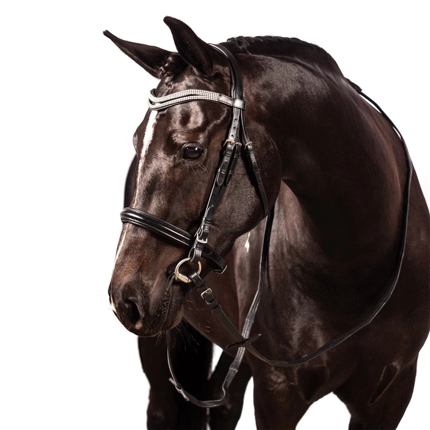 - Stylish black leather dressage bridle