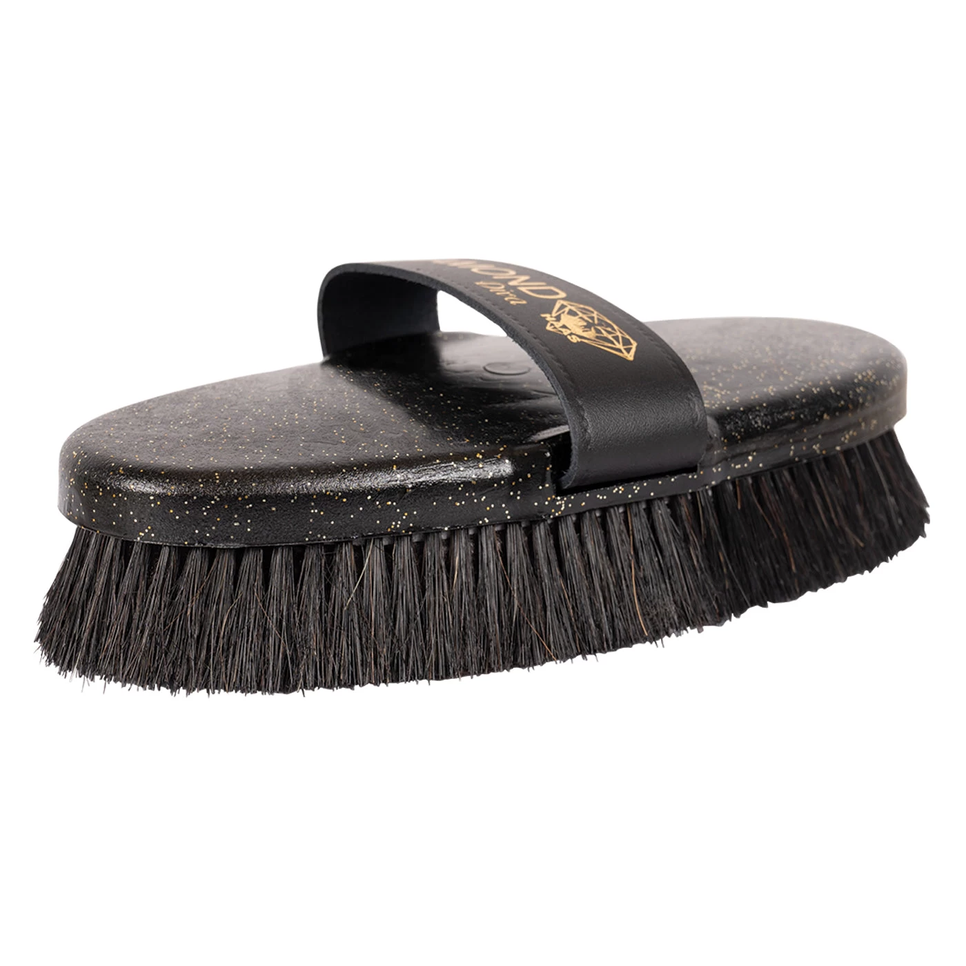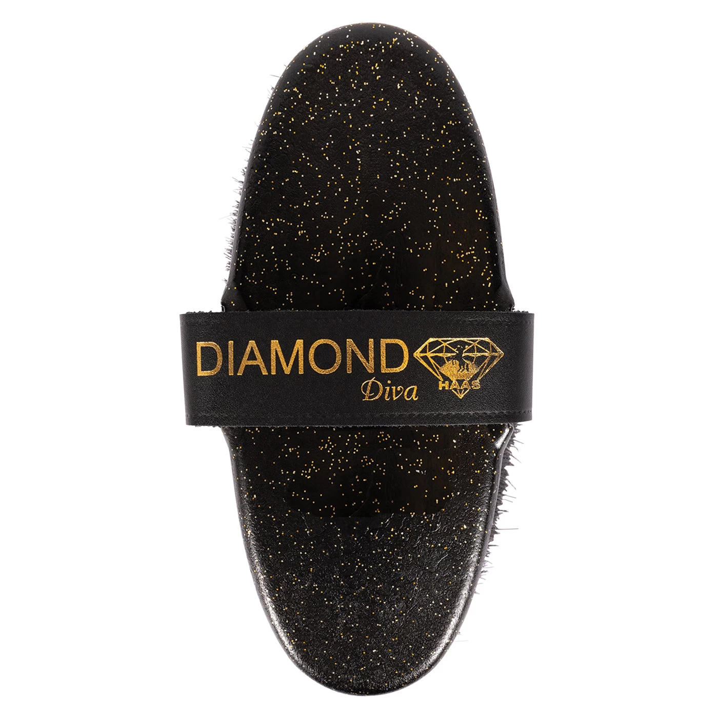 The Haas Diamond Diva Brush is made of merino lambswool bordered with high quality horse hair. This finishing brush is perfect for removing dust and debris for a glossy coat. Complete with a leather wrist strap and sparkly resin back.