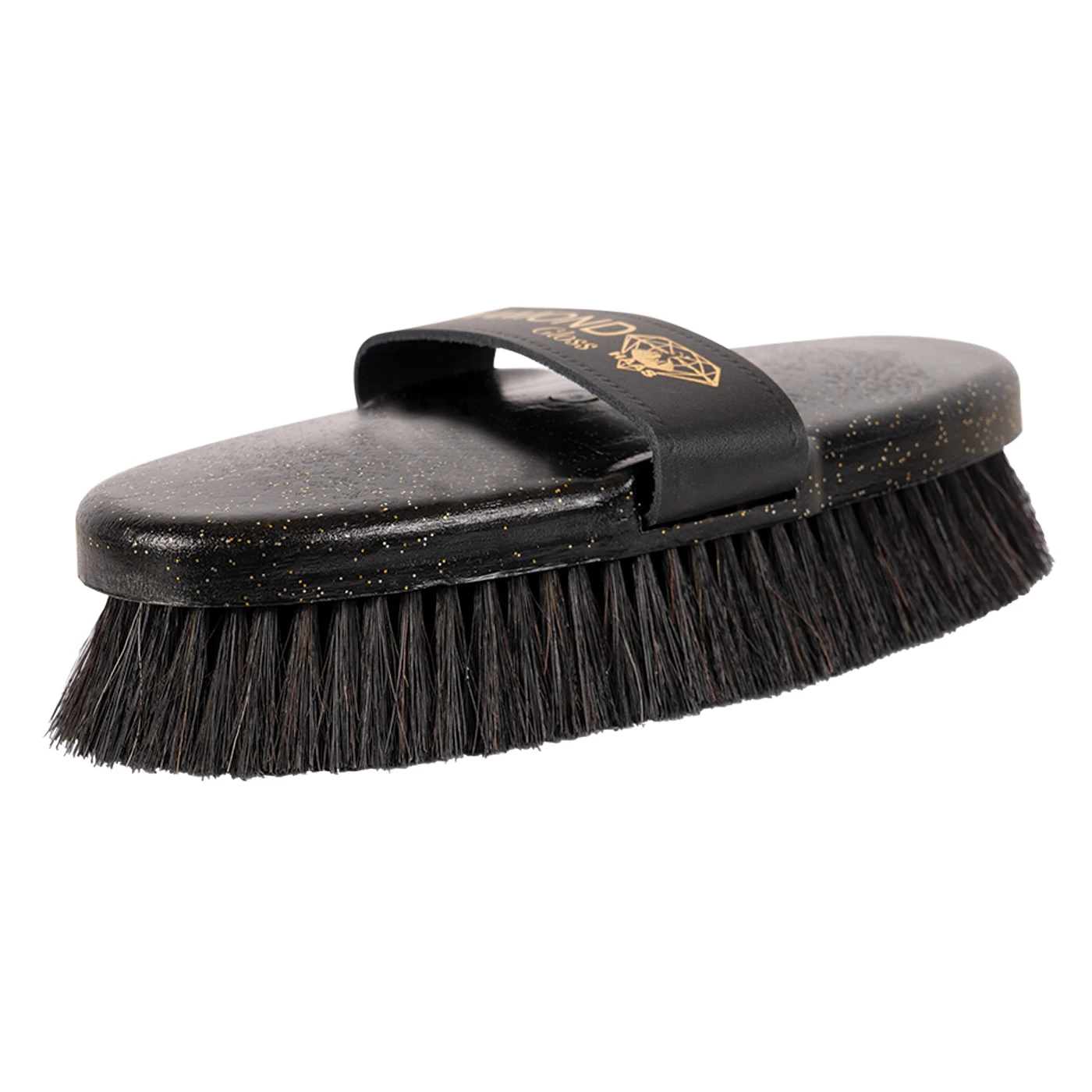 The Haas Diamond Gloss Brush offers an elegant design made from dense, soft and natural horse hair bristles. Complete with a leather wrist strap and glitter body design.
