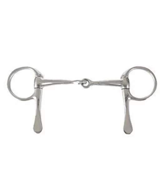 The Half Cheek Snaffle bit is a relative of the full cheek snaffle, offering an arm extending down the side of the cheek from the mouth. The Half Cheek Snaffle bit only has its lower arm and offers a spoon-shaped appearance. The Half Cheek Snaffle Bit helps to improve lateral action on a direct rein by putting pressure on the horse’s face when the rein is engaged. The half cheeks help to prevent the bit from sliding through the horse’s mouth and the arm extends towards the horse’s jaw to help keep it in place. The Half Cheek Snaffle Bit if often used on driving or racehorses.