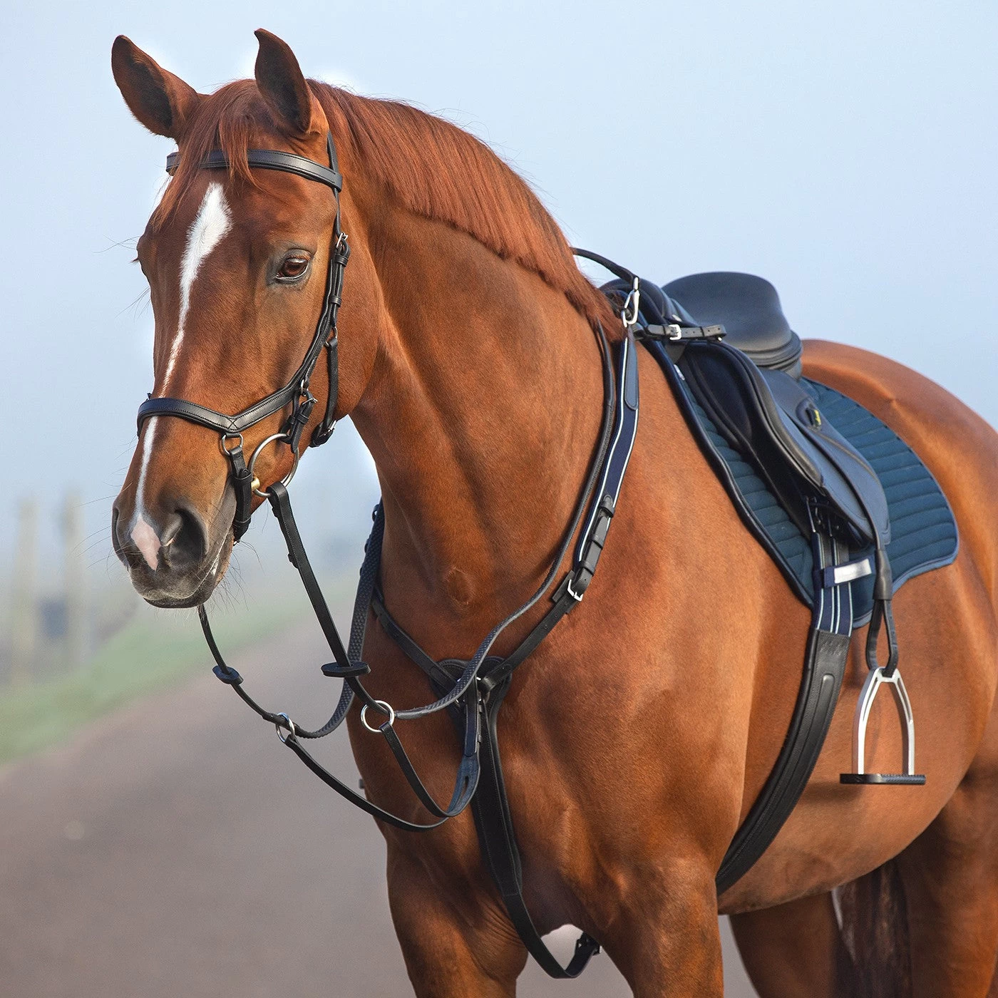The Rambo Micklem Breastplate is ergonomically designed with a 3-point construction for added comfort and freedom of movement while jumping or out on cross country. This breastplate offers maximum adjustment possibilities on the sides of the neck, underbelly strap and a detachable martingale attachment. Complete with a removable safety strap that may clip across the withers as well as top clips to attach to the d-rings of the saddle.