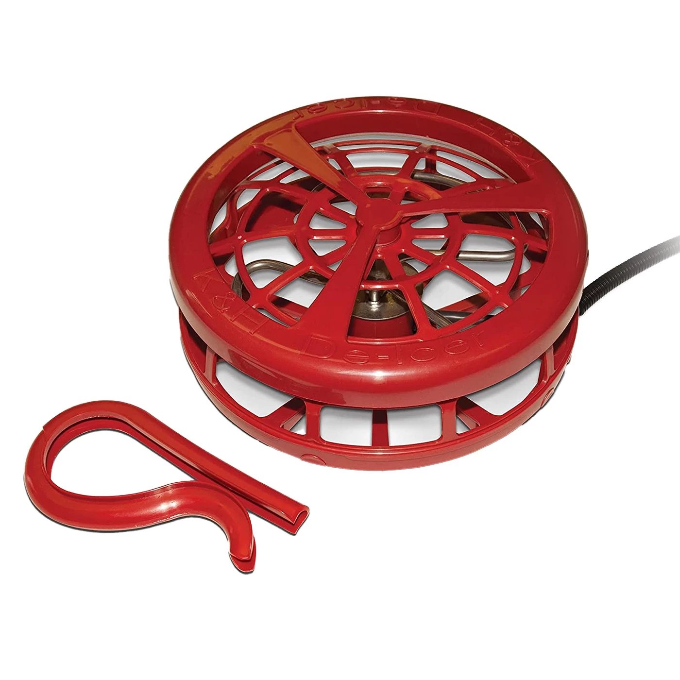 The K and H Ultimate Stock Tank De Icer is suitable for use in outdoor paddocks during unfavourable weather to help keep water de-iced. Features a 5.5′ cord with clip to secure to the edge of the tank or bucket to help prevent chewing, cribbing, or removal from the tank.