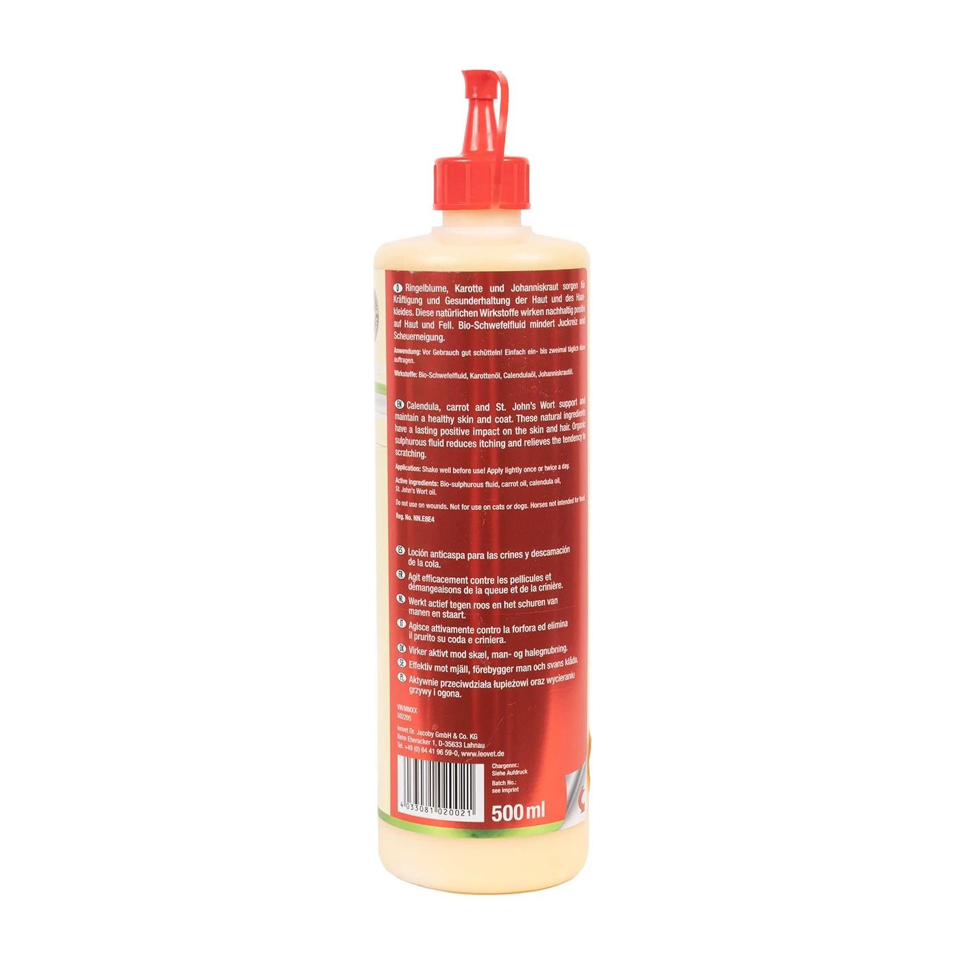 Natural ingredients like marigold, carrot and St. John´s wort help regenerate and restore damaged skin areas and stimulate hair growth on bald spots. A luxurious, long-lasting lotion that soothes bothersome itching and deters rubbing.