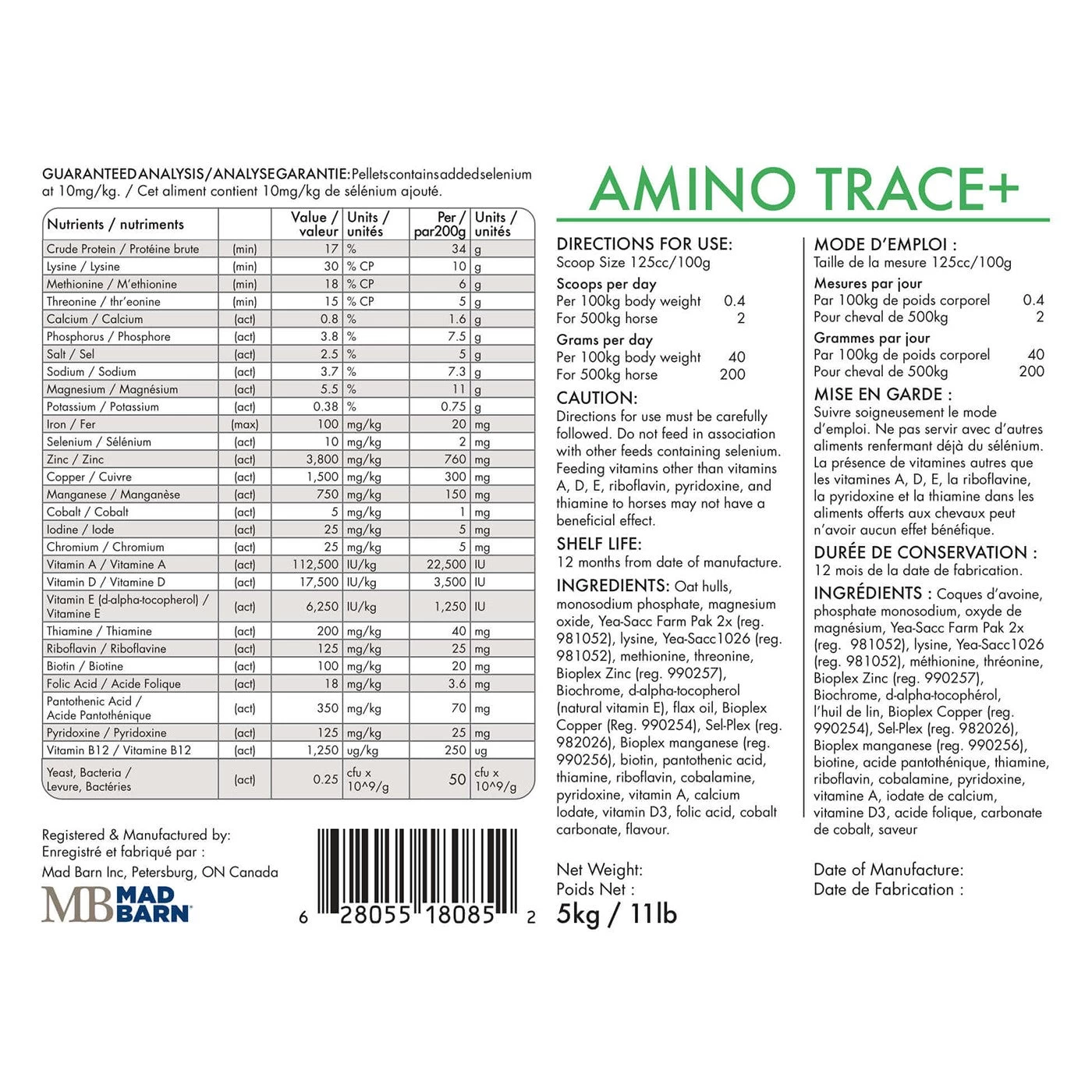 Specifically formulated for the ECIR group, designed to provide the ultimate nutrition for improved hoof quality, absorption of nutrients and improved digestion – in a convenient pelleted format. When a custom formula is not possible or practical, AminoTrace+ is an excellent choice to help balance your IR/Cushing’s/PPID equine companion’s diet. 20 Kg. Due to the size of this item, an additional shipping charge will apply.
