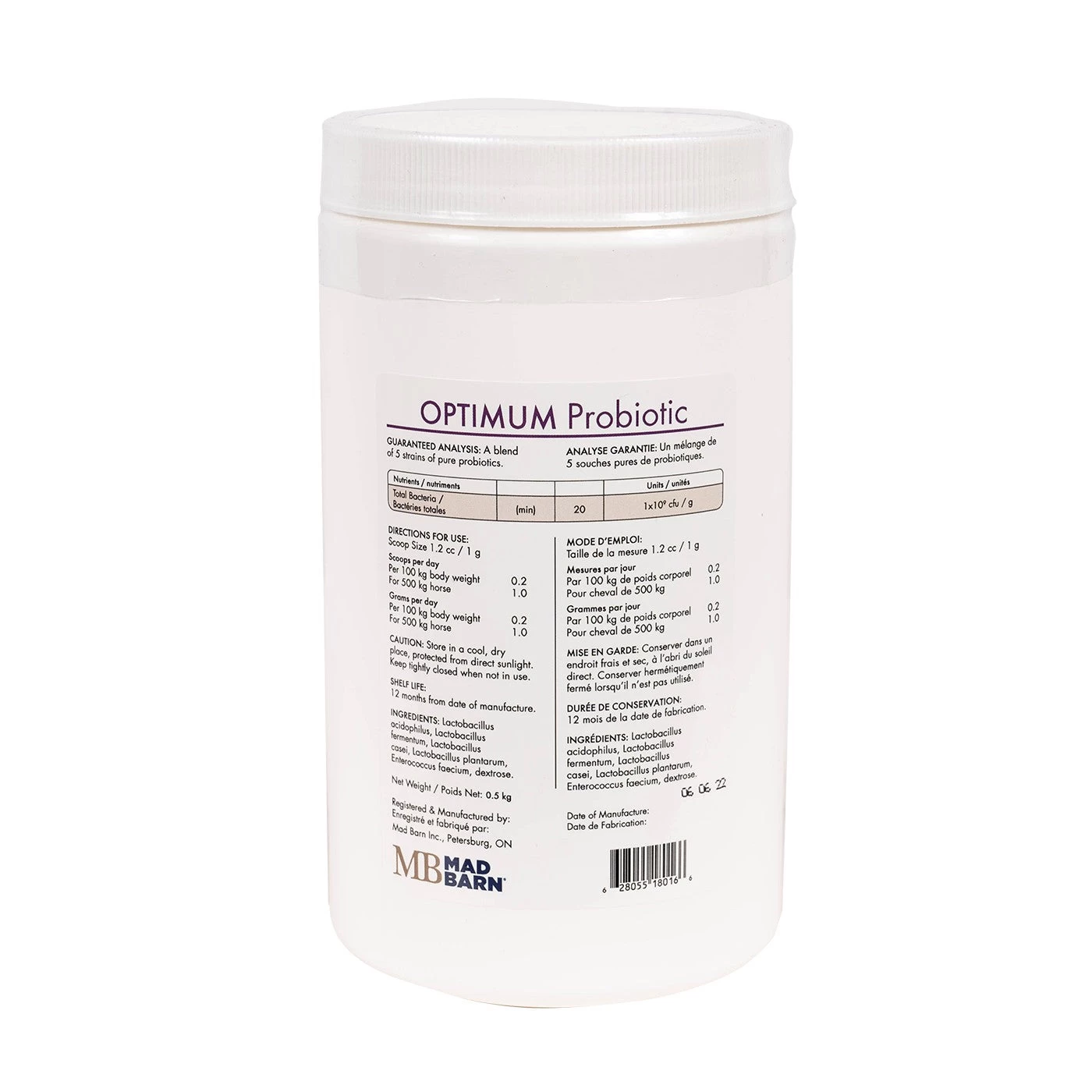 Mad Barn Optimum Probiotic supports gut health and immune function. Made with Mad Barn’s five strain probiotic blend without fillers. Powder. 500gm.