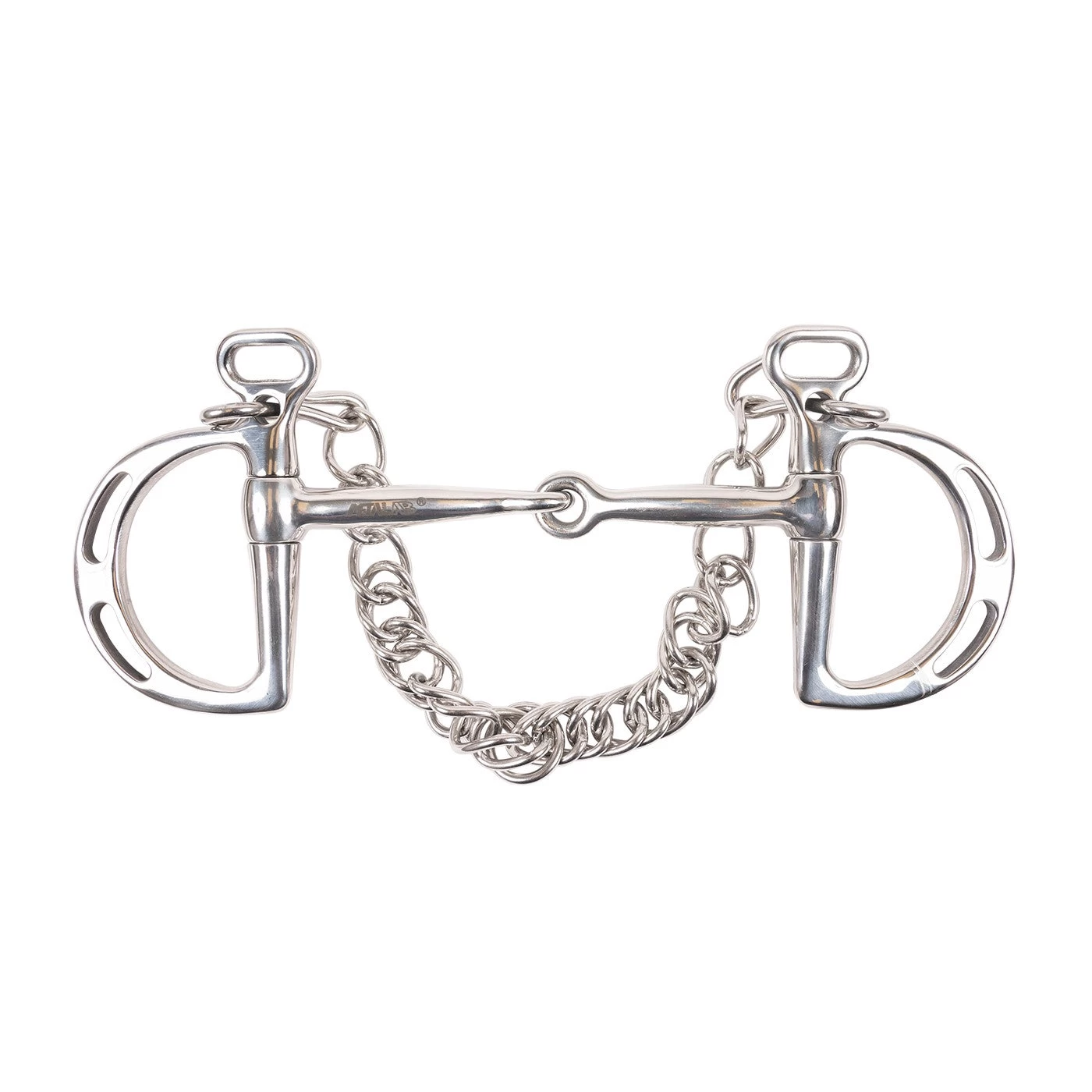 Crafted in stainless steel for long lasting durability, the Metalab Kimberwick Bit is designed to combine the effects of a snaffle and curb bit. The d-shaped cheeks provide the choice to apply pressure to either the horse’s tongue or, chin and poll depending on the placement of the reins.