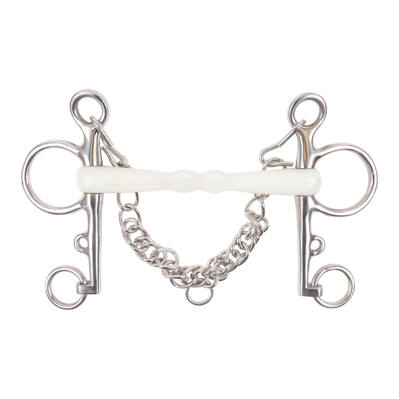 The Metalab Mullen Mouth Flexi Pelham Bit is designed to combine the effects of a snaffle and curb, helping to encourage the horse to bend at the poll through pressure applied by the curb rein. Crafted from a premium quality stainless steel for optimal durability and featuring a softer flexi plastic covering on the mouthpiece for enhanced comfort. Straight mullen mouth and complete with a curb chain.
