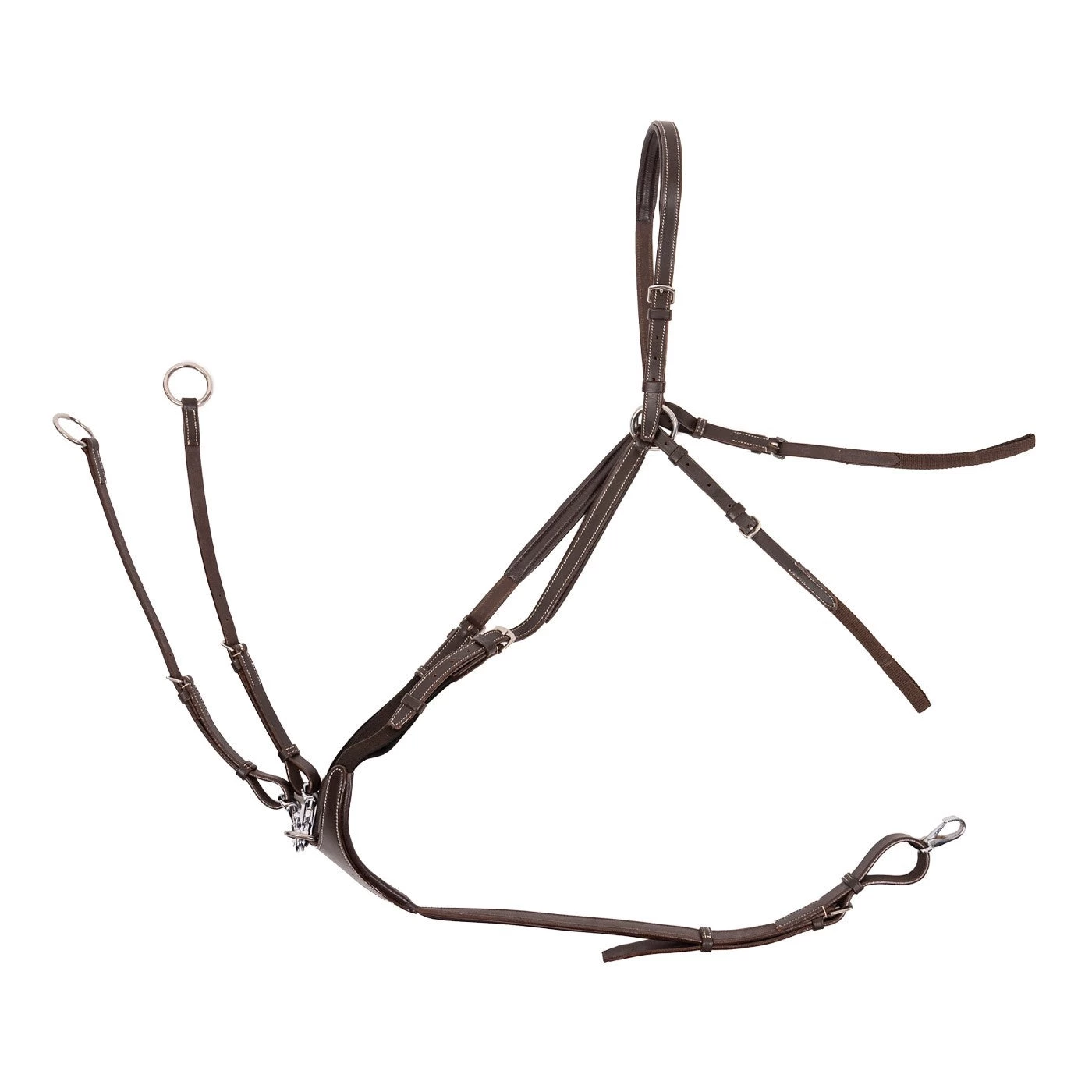 - Detachable running martingale attaches to the chest with snaps