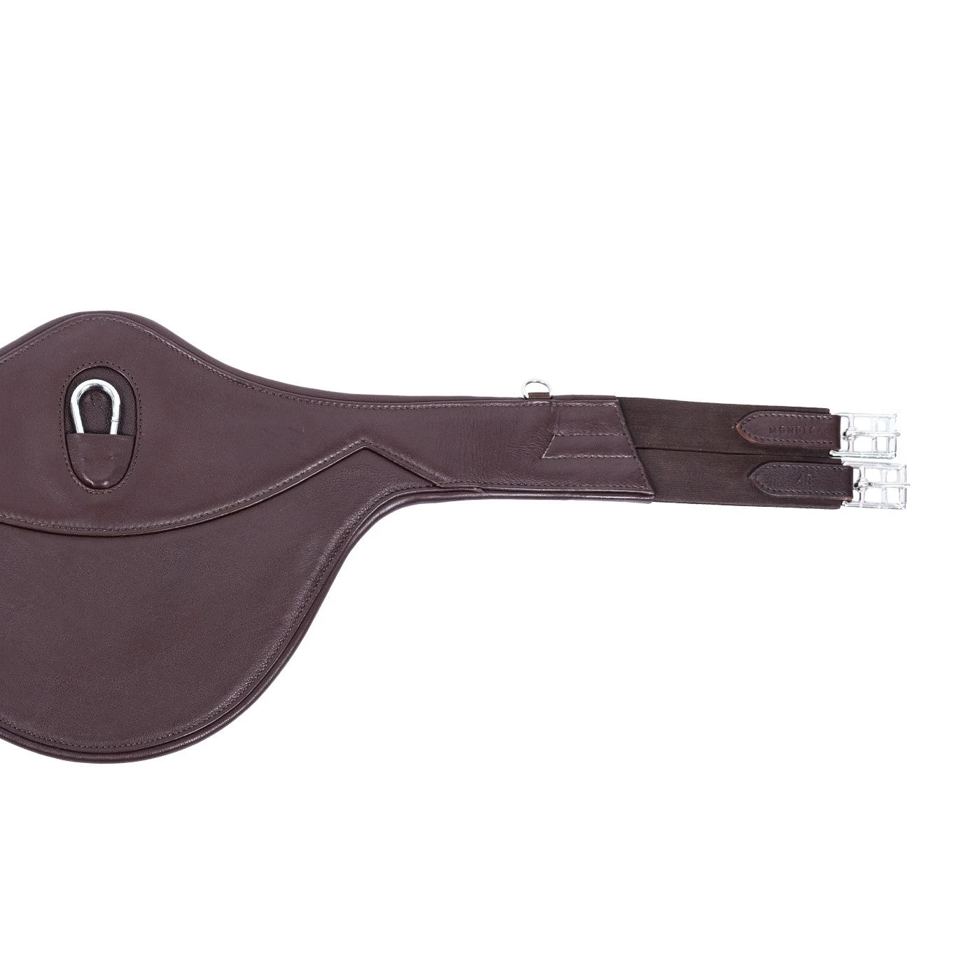 The Mondega Belly Pad Girth is constructed from leather and helps to provide comfort to the horse with it’s ergonomic shape for increased freedom of movement and belly guard to offer added protect for horses with studded shoes. Complete with double elastic ends and roller buckles, a central snap hook and a “D” on each side for rein attachment.