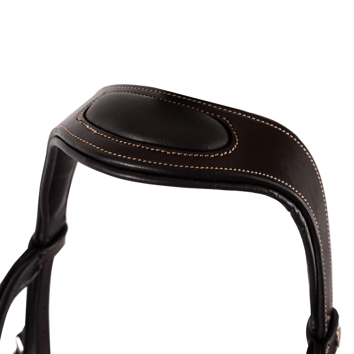 Featuring an anatomically designed, wider crownpiece with an innovative pressure-relief pad over the poll and a butter-soft leather lining. The noseband and browband are finished with detailed contrast stitching and comfortable padding. Buckle end cheekpieces with discreet leather keepers hold the bit in place. Sold without reins. Bit not included.