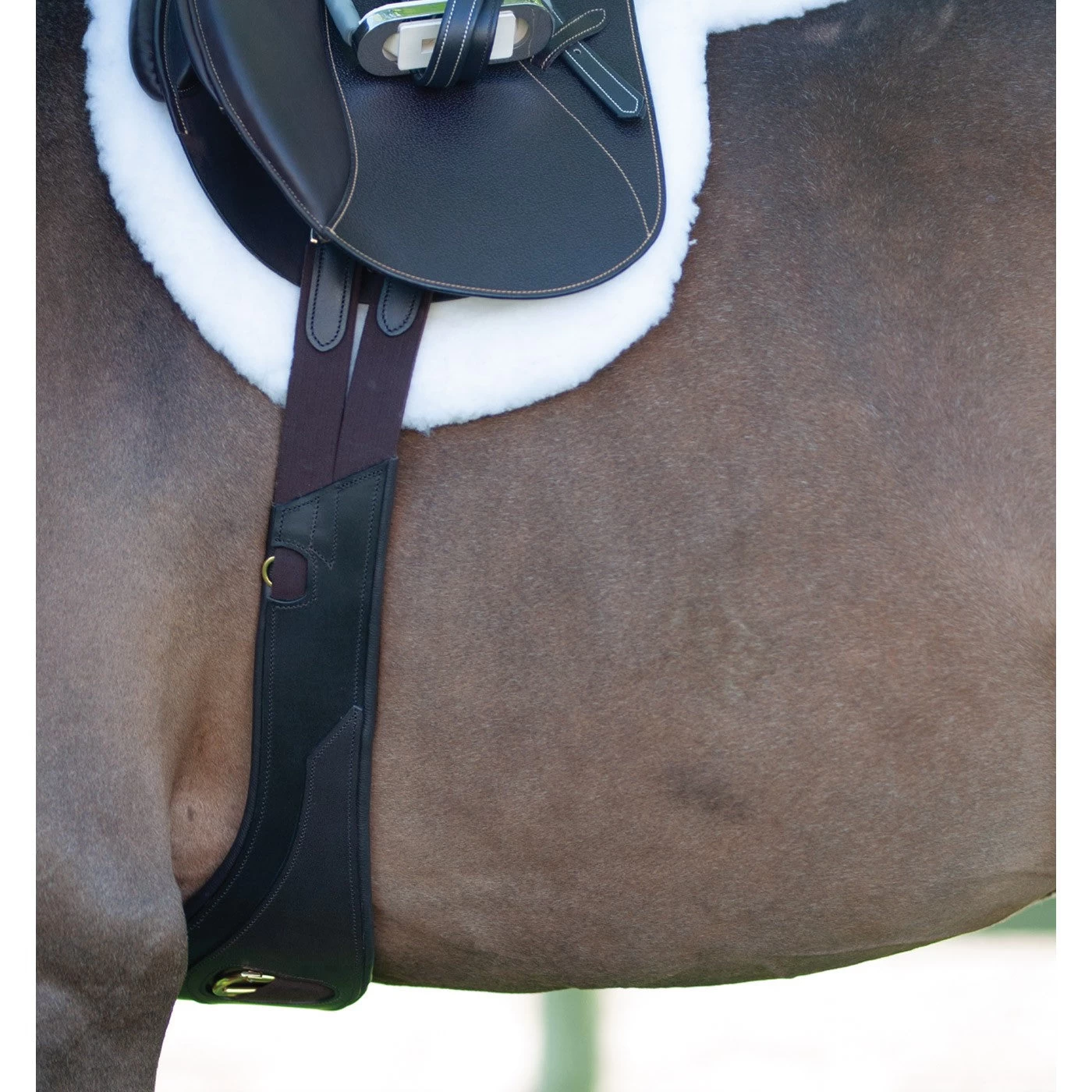 Beautiful Italian leather girth features a classy, minimalist design with streamlined stitching, matching elastics and silver hardware. Luxuriously padded throughout and anatomically designed for maximum comfort and freedom of movement. Roller buckles make it easier for the rider to adjust either from the saddle or on the ground. Multiple attachment points accommodate most training aids.