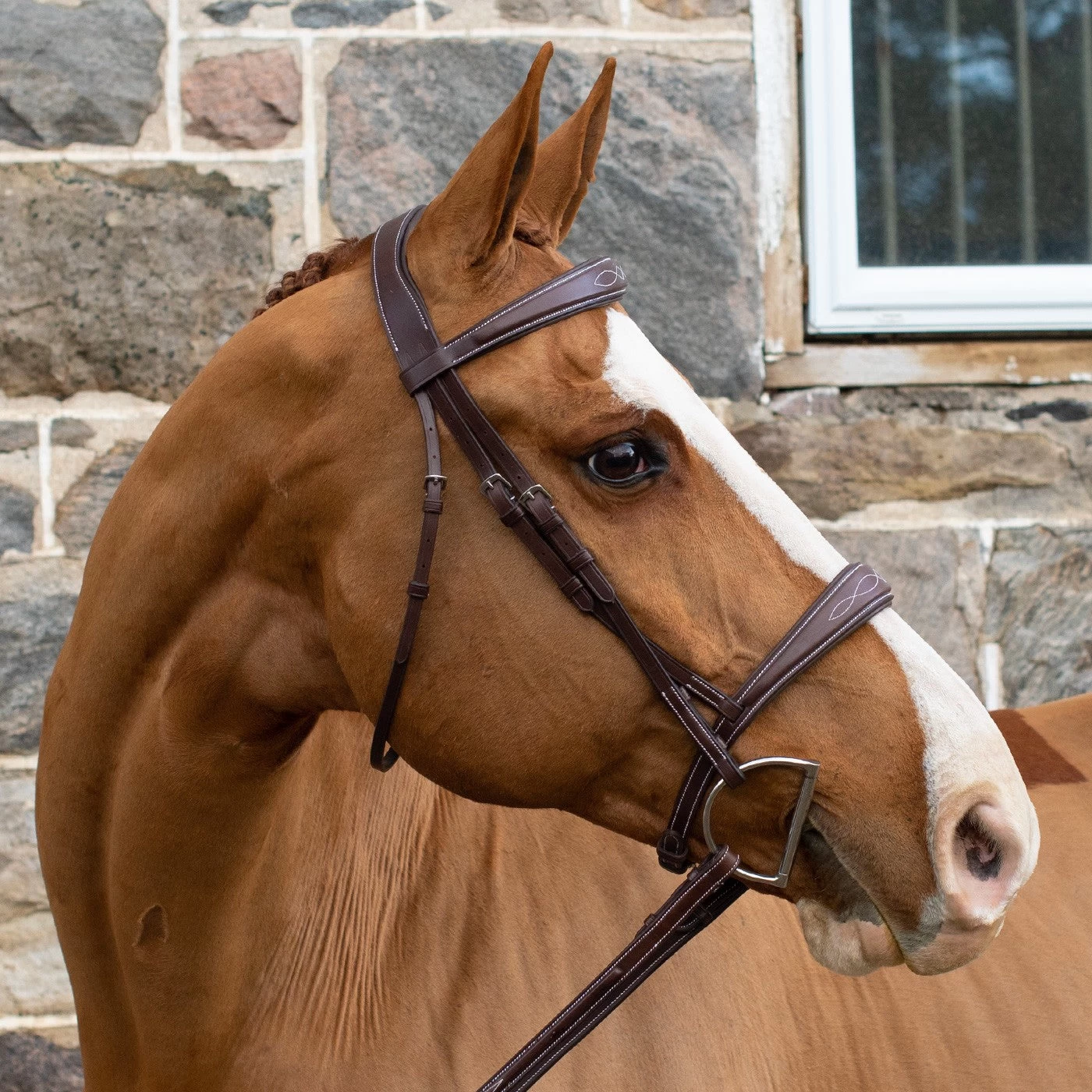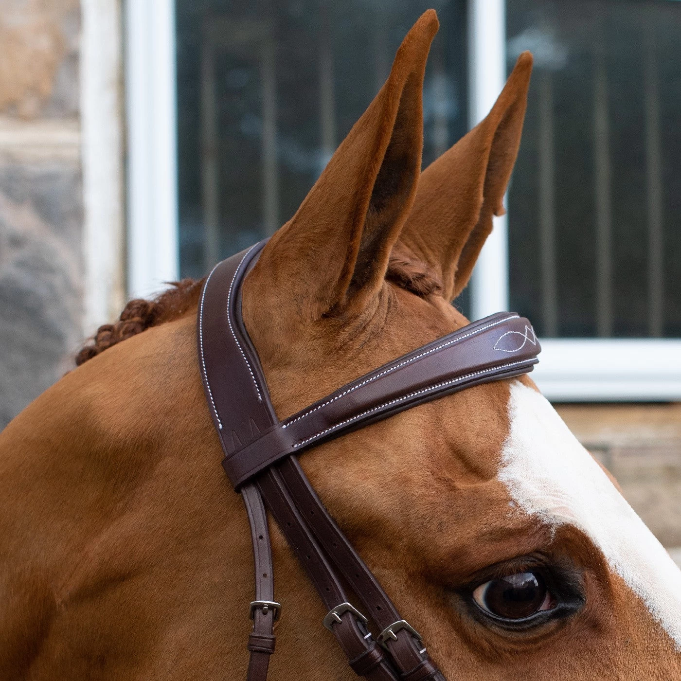 Exquisitely crafted in soft, premium leather and beautifully finished with fancy stitching across the thick noseband and browband, the Mondega Vienna Fancy Stitched Hunter Bridle beautifully frames your horse’s head. Anatomically shaped with thoughtfully placed padding, the Vienna offers uncompromising quality, comfort and style in the hunter or jumper ring. Complete with reins.