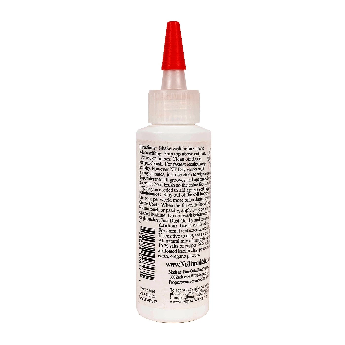 NT Dry Powder is used to aid against moisture build up in the equine foot, supporting a firm and dry heel and frog. All-natural, non-caustic and non-staining. Comes in a convenient squeeze applicator bottle that contains approx. 25 applications. Developed in the USA. Easy to use powder made up of fine, dry particles. 2.5oz.