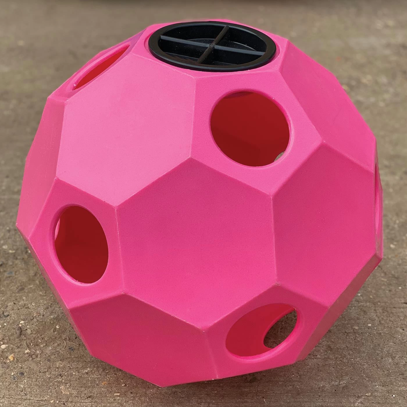 Uniquely shaped slow feeder features 42 cm diameter 12 x 70 mm holes for eating from, recessed to help prevent dirt contamination, and holds up to 7 lb. of hay. Spherical shape easily rolls as the horse grazes from it, providing stimulating entertainment in the field or stall. Tested for extreme temperatures and produced from food-safe virgin polymer and LLDPE (linear low-density polythene), the Parallax Hay Ball is extremely durable in all types of climates and suitable for most hoofed animals including goats, llamas, and alpacas. BPA free and 100% recyclable. Due to the size of this item, an additional shipping fee applies.