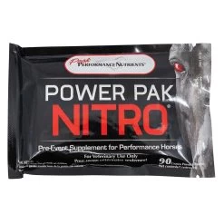 Peak Performance Power Pak Nitro provides pre-event support for lung, cardiovascular and muscular health. Herbal pre-event supplement for performance horses. Contains a proprietary blend of herbs such as Schisandra, Bulbus Fritillaria, Dong Chong Xia, and Ci Wu Jia Oral powder. 90gm single serving sachet.