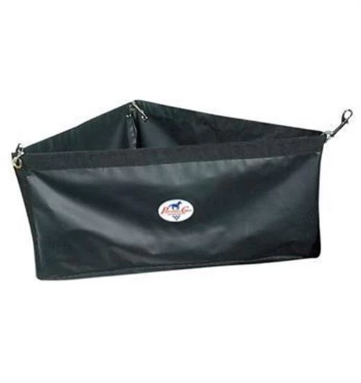 This ultra-tough Professional’s Choice Corner Feeder boasts a 1,000 denier mesh bottom and comes complete with three double-ended heavy-duty snaps. Dust and debris falls through the mesh so you can be sure your horse won’t be breathing it in! The mesh resists mildew and the air permeable fabric keeps the feed fresh. The Professional’s Choice Corner Feeder design allows for use in slant load trailers or as a corner feeder in the stall. Measures approximately 33″ x 26″ x 23″ x 11″ deep.