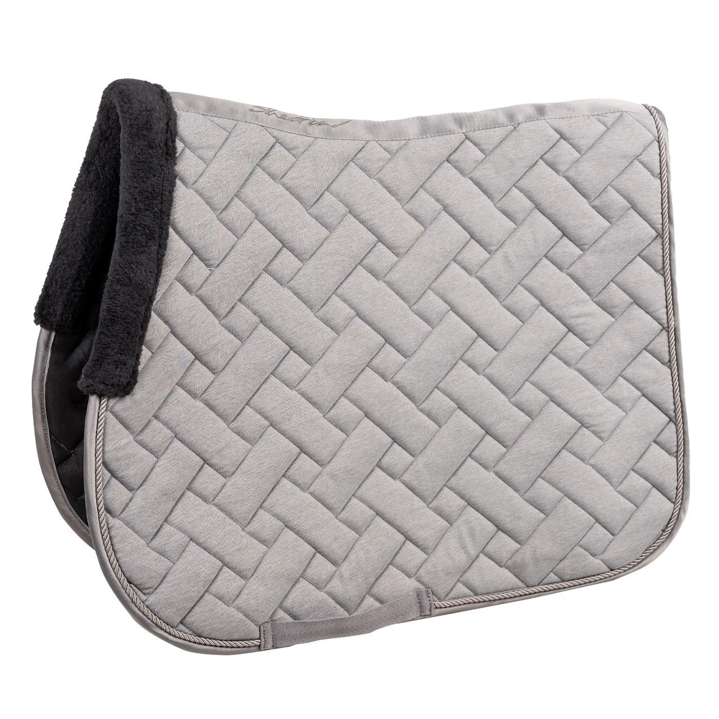 Ride in comfort and style with the Shedrow Icon Saddle Pad. This quality pad features high end finishes for a polished look. Made from double layered foam and felt with a quick dry mesh lining to keep your horse cool and comfortable. Includes girth loops and billet straps. Finished with luxurious faux mink fur padding over the withers. Small square quilting contours to your horse’s natural shape to prevent bunching. 100% Polyester fabric and lining with foam and felt padding. Foam measures 10 mm thick, felt measures 5 mm thick.