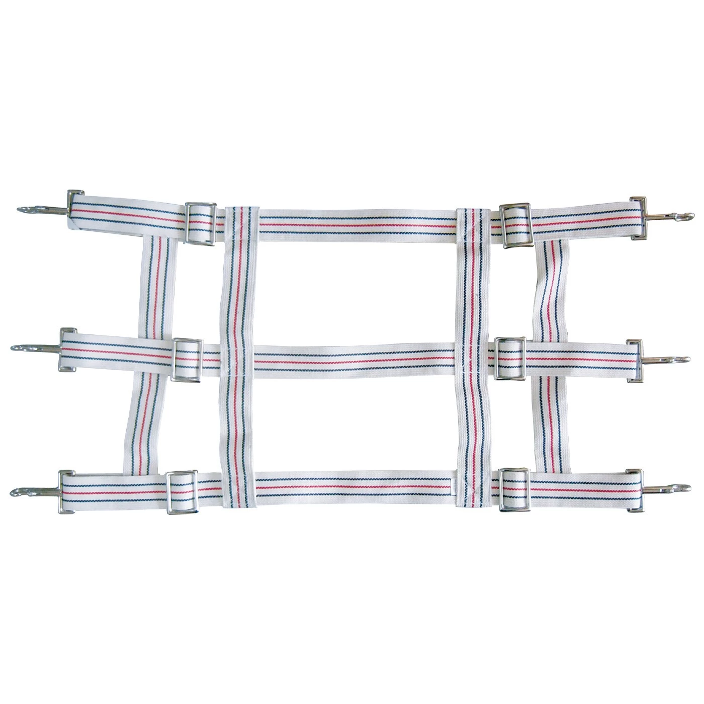 The Shedrow Open Stall Guard is created from heavy duty cotton webbing with durable hardware for long lasting use. This stall guard features an adjustable front that accommodates a stall door opening from 42″ to 46″ wide. Finished with six heavy duty snaps that can be easily installed on most stall fronts. Mounting hardware not included.
