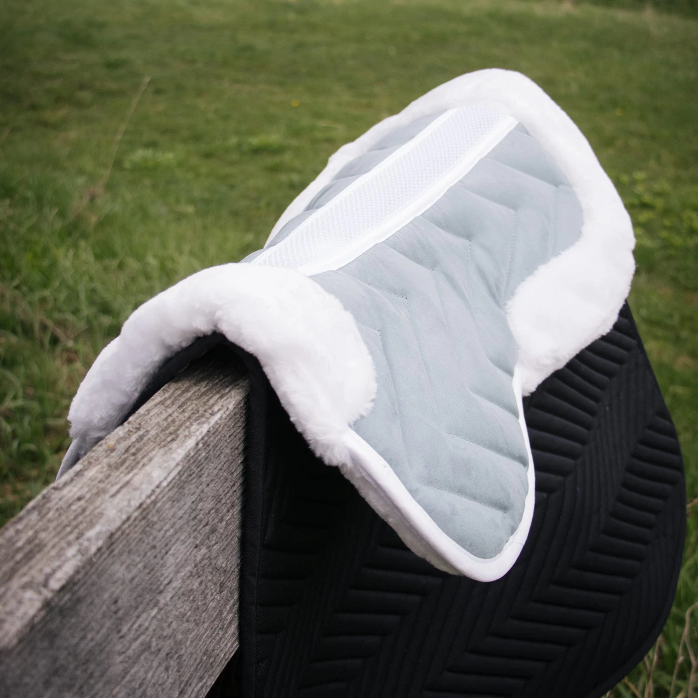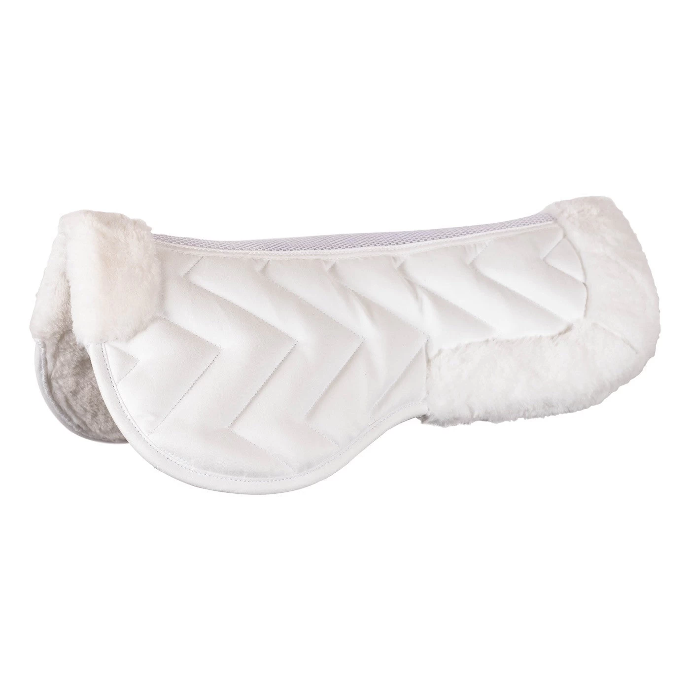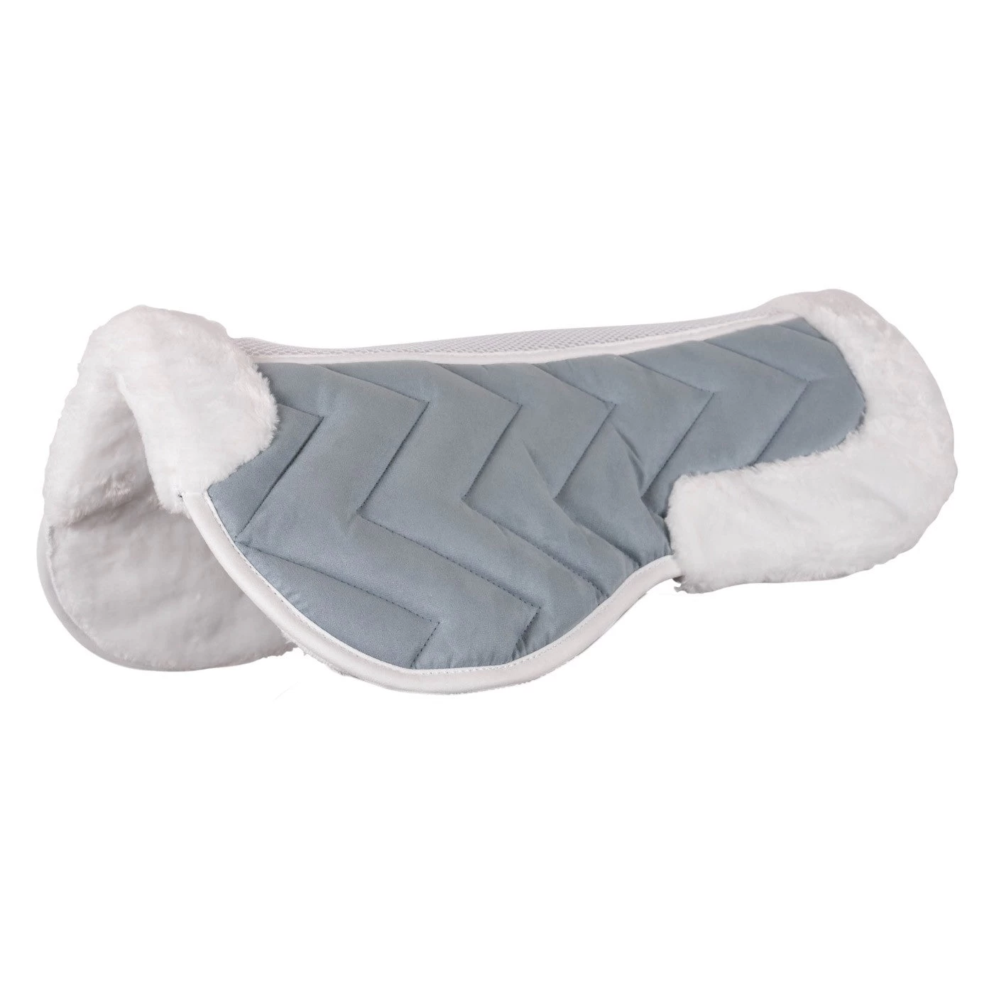 Synthetic suede half pad features comfortable padding with trendy chevron stitching, comfortable fleece padding in strategic spots, and a 3D mesh trip along the spine to help promote air flow.