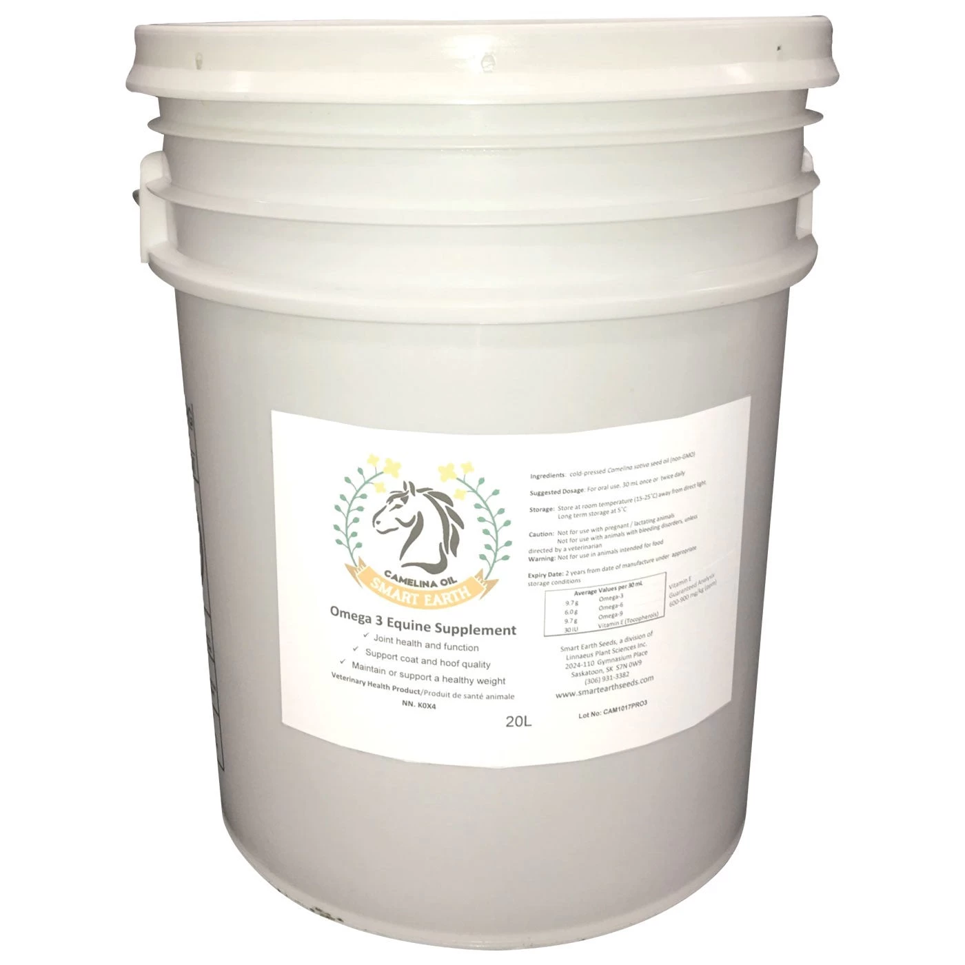 Smart Earth Camelina Oil is a palatable omega supplement that may promote healthy weight gain, support dry skin and coat, and support mane and tail quality. Camelina Oil contains Vitamin E that may help your horse grow a healthier coat. Relative to other vegetable sources of omega fatty acids, camelina oil contains the most balanced profile of omega 3 and 6 with a ratio 1.2-1.6:1 and high ALA content. Smart Earth Camelina Oil is non-GMO, glyphosate free, cold pressed and made in in a human food grade facility. Sustainably produced, Smart Earth uses crops that require minimal irrigation or fertilization, and has a smaller carbon footprint than protein-based omega sources such as fish oils. Produced in Saskatchewan, Canada. 18.9 L. Due to the size of this product, an additional shipping charge will apply.