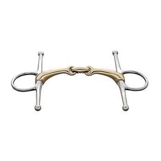 Suitable for a variety of disciplines and levels of expertise, the Dynamic RS Full Cheek Double Jointed Snaffle transmits the pressure of the rein aids directly onto the tongue and the lower jaw without leverage action on the poll, while the full cheek fixtures help keep the bit steady. The ergonomically formed Dynamic RS mouthpiece lies perfectly between tongue and palate, resulting in soft and even pressure on the entire tongue area. The centre link is angled forward by 45° allowing it to lie smoothly on the tongue and does not press into the sensitive palate. Crafted from Sprenger’s Sensogan ® metal alloy, this bit has a low copper content that increases salivation while remaining easy to clean and shine.