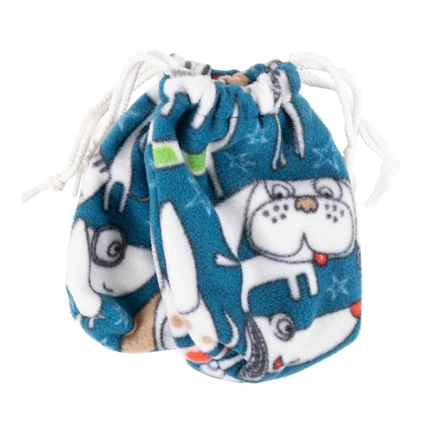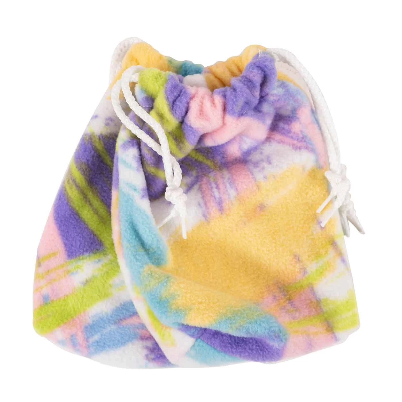 - Fleece pouch with drawstring closure