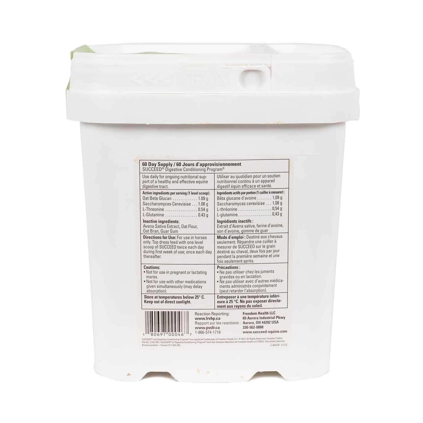 Serious horse people the world over use Succeed, a nutritional approach to managing the horse’s digestive health, including the stomach and the hindgut. Succeed offers digestive support for the horses in your care naturally. It provides a unique blend of nutrients that support the health of the entire equine digestive tract despite the challenges inherent in modern care, feeding and competition. Succeed may support both the digestive anatomy (intestinal villi, enterocytes, intestinal mucosa) and the function (healthy bacterial balance, digestion, feed transit through the digestive tract, etc.). Succeed contains natural ingredients including oat oil, oat flour, yeast products, L-glutamine and L-threonine. The granule formulation is easy to feed. 3.75lb.