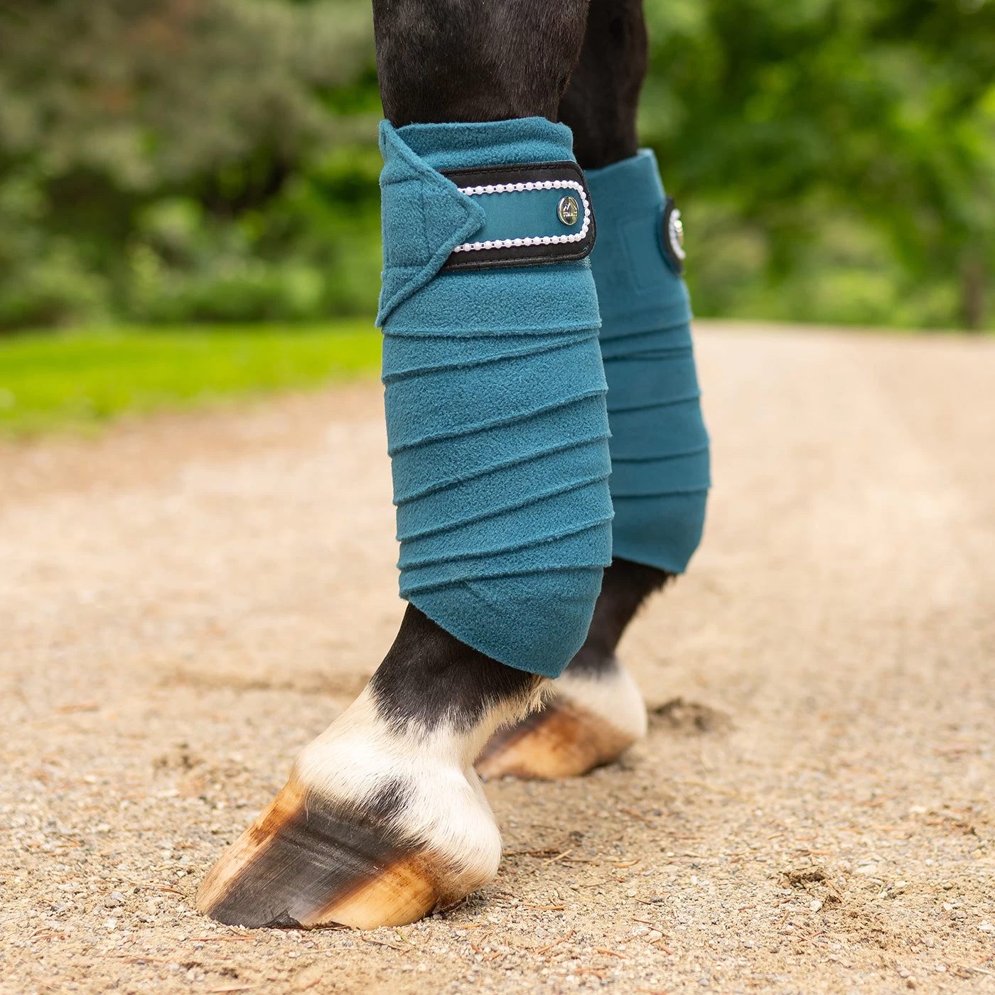 The Summit Langdon Polos offer a high quality bandage to help protect your horse’s legs from knocks. Constructed from soft, anti-pilling fleece for ultimate comfort and protection. Fully adjustable and easy to apply with a touch tape fastening. Complete with a pearl and rope braid detailing for a luxurious finish.