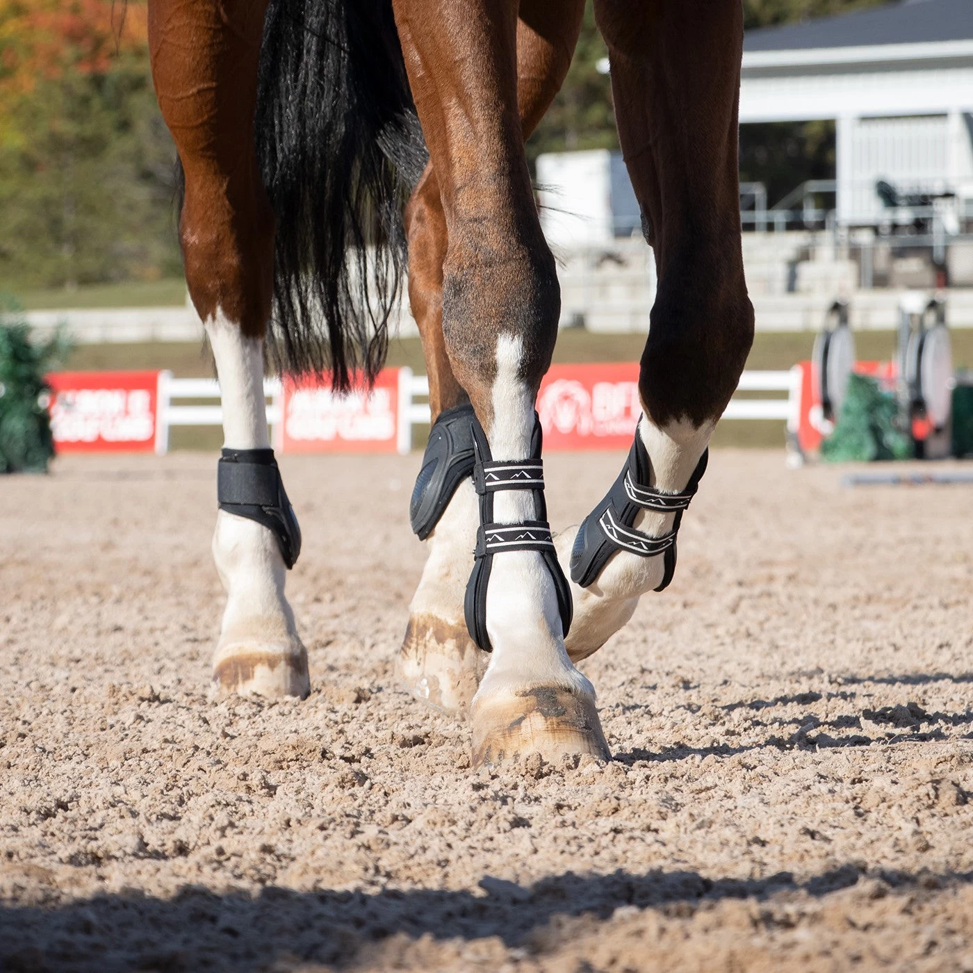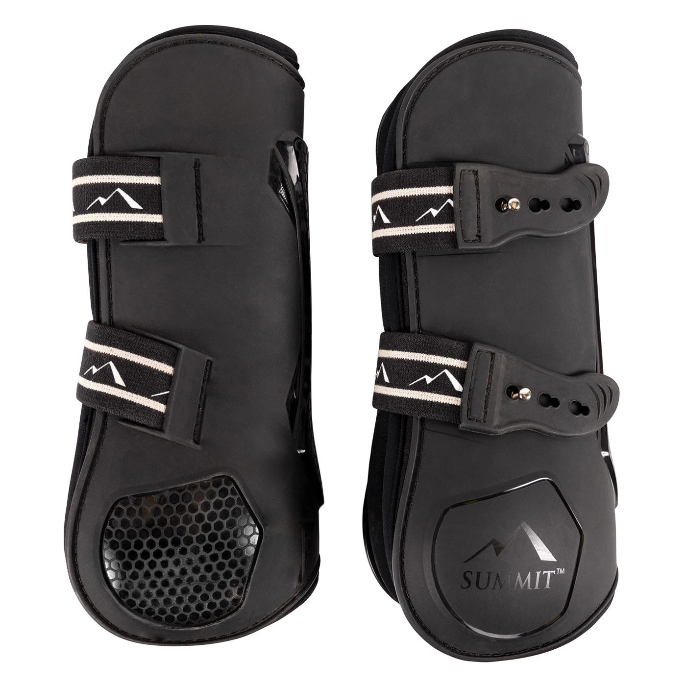 The Summit Open Front Tendon Boot offers an elegant construction with an anatomic shape, and superior functionality, suitable for everyday schooling or in the show ring. Features a double ventilation system to help channel heat away from the horse’s leg. Complete with elastic hook and tab closures for easy on and off.