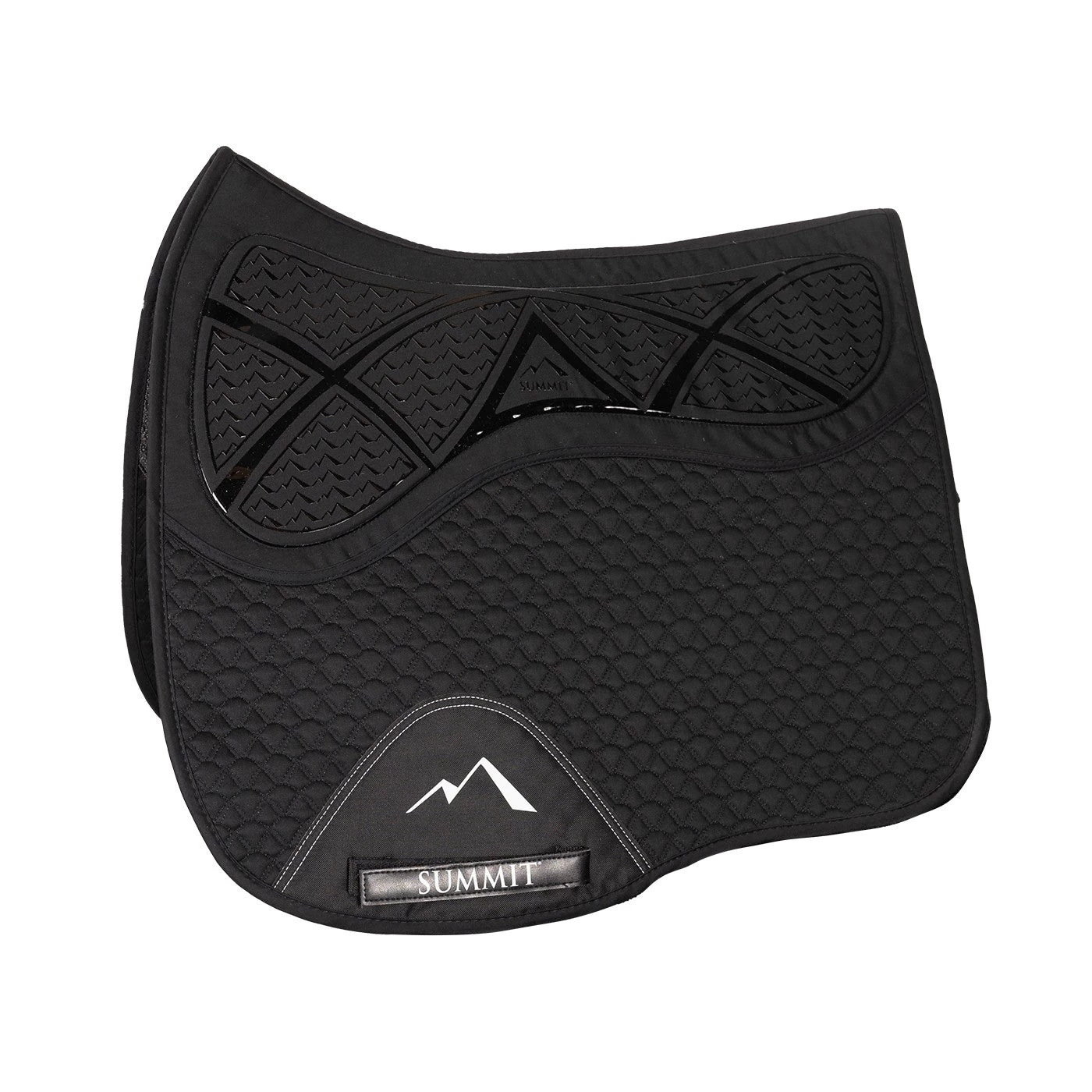 The Summit Pro GripPad’s myriad of features combine to create an all-in-one multi-purpose pad. Featuring a trendy euro cutaway hem, the Summit Pro is gently cushioned with a combination of technical gels and foam which not only negates the need for a half pad, it also helps to stabilize your saddle and reduce unwanted movement. The high wither design accommodates every body type and the 600 denier polyester girth panel offers a shield against rubs in one of your horse’s most sensitive areas. The high quality cotton fabrics are lined with a soft anti-slip material that is gentle on your horse’s skin and offers extra security against saddle slipping. Dressage size. Complete with Velcro girth straps. Billet straps not included.