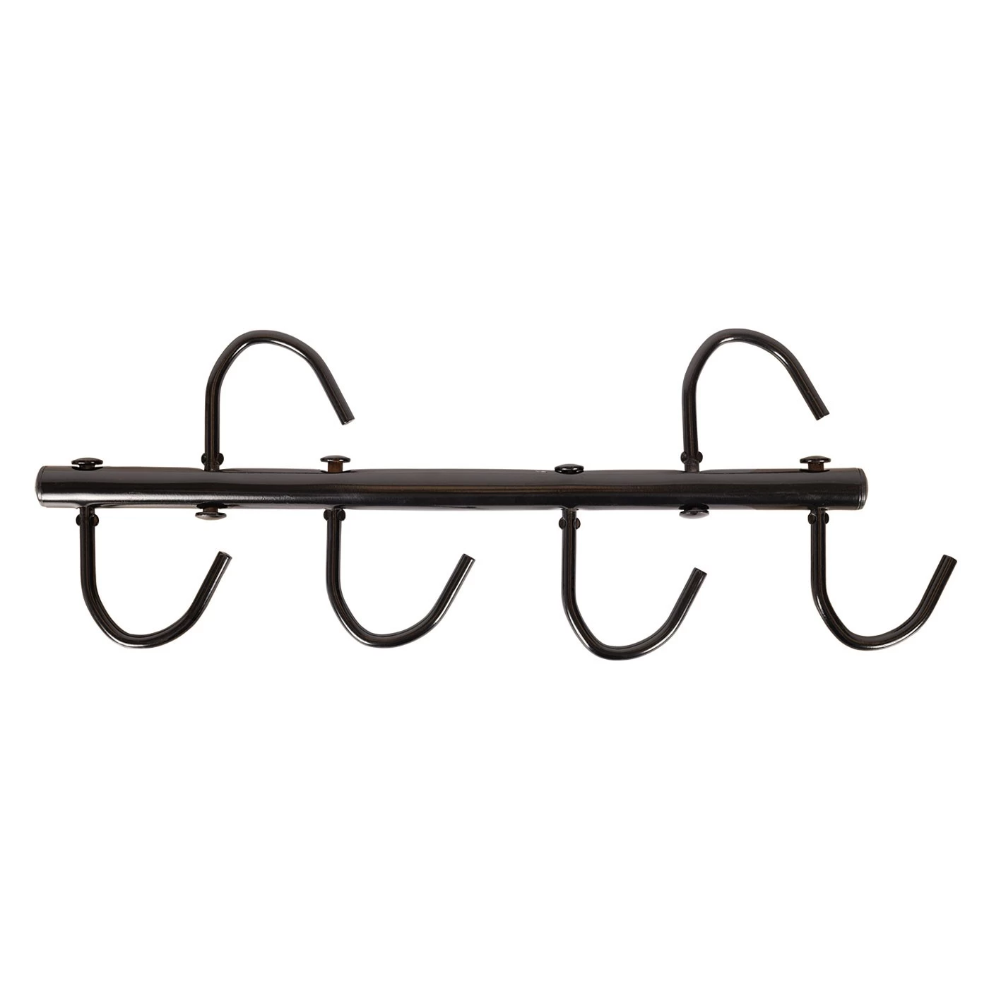 The four hook swivel tack rack is a portable tack rack for at home or on the road. Easy to hang in a variety of places and accommodates anything from halters to bridles and more.