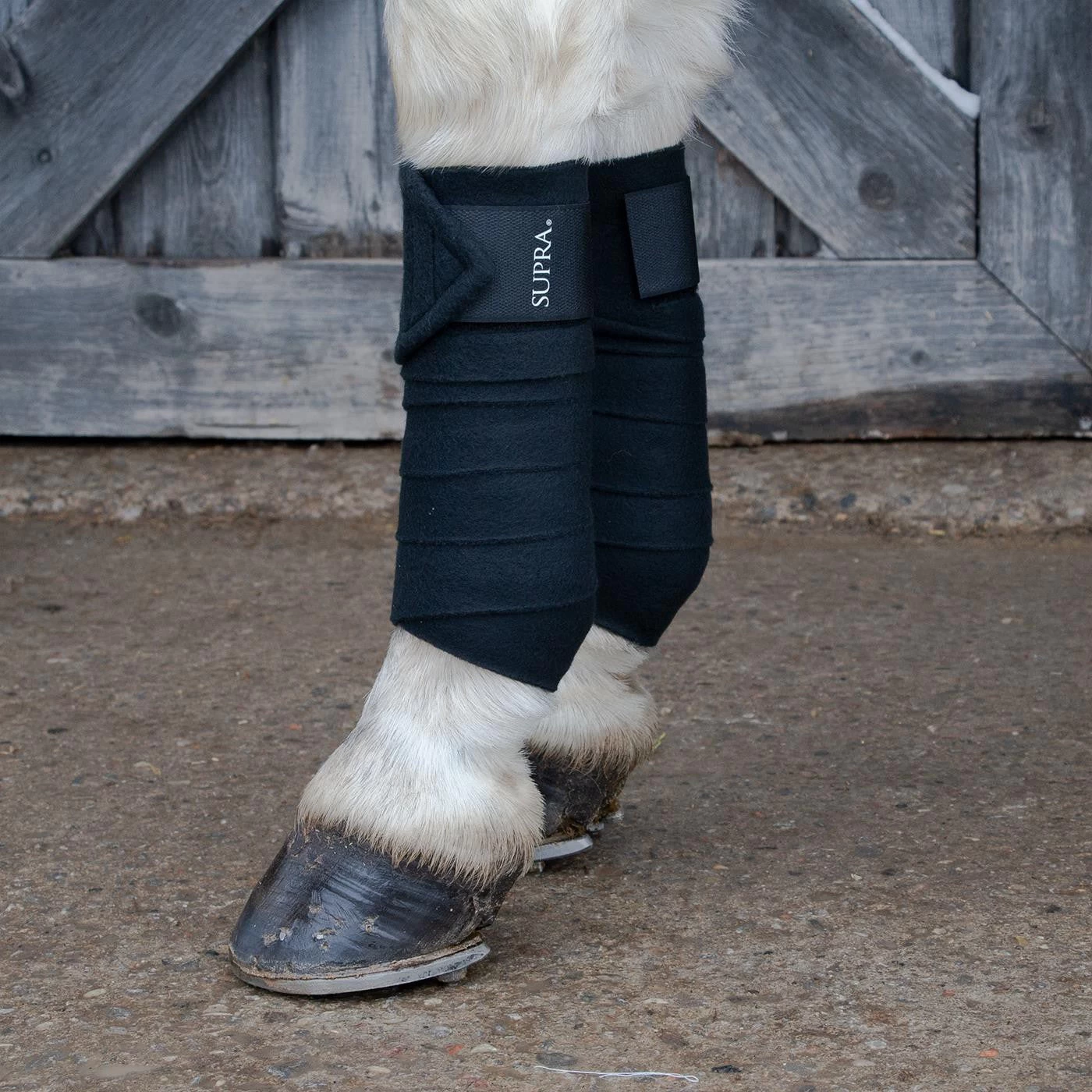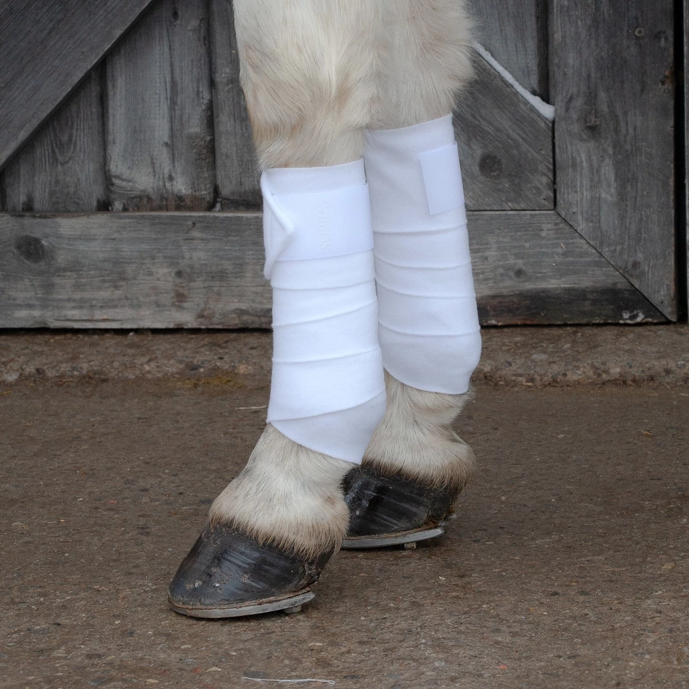 Fleece polo bandages include reusable drawstring storage bag. Bag doubles as a laundry bag to keep them from getting tangled and stretched when washed. Made from 260 g fleece.