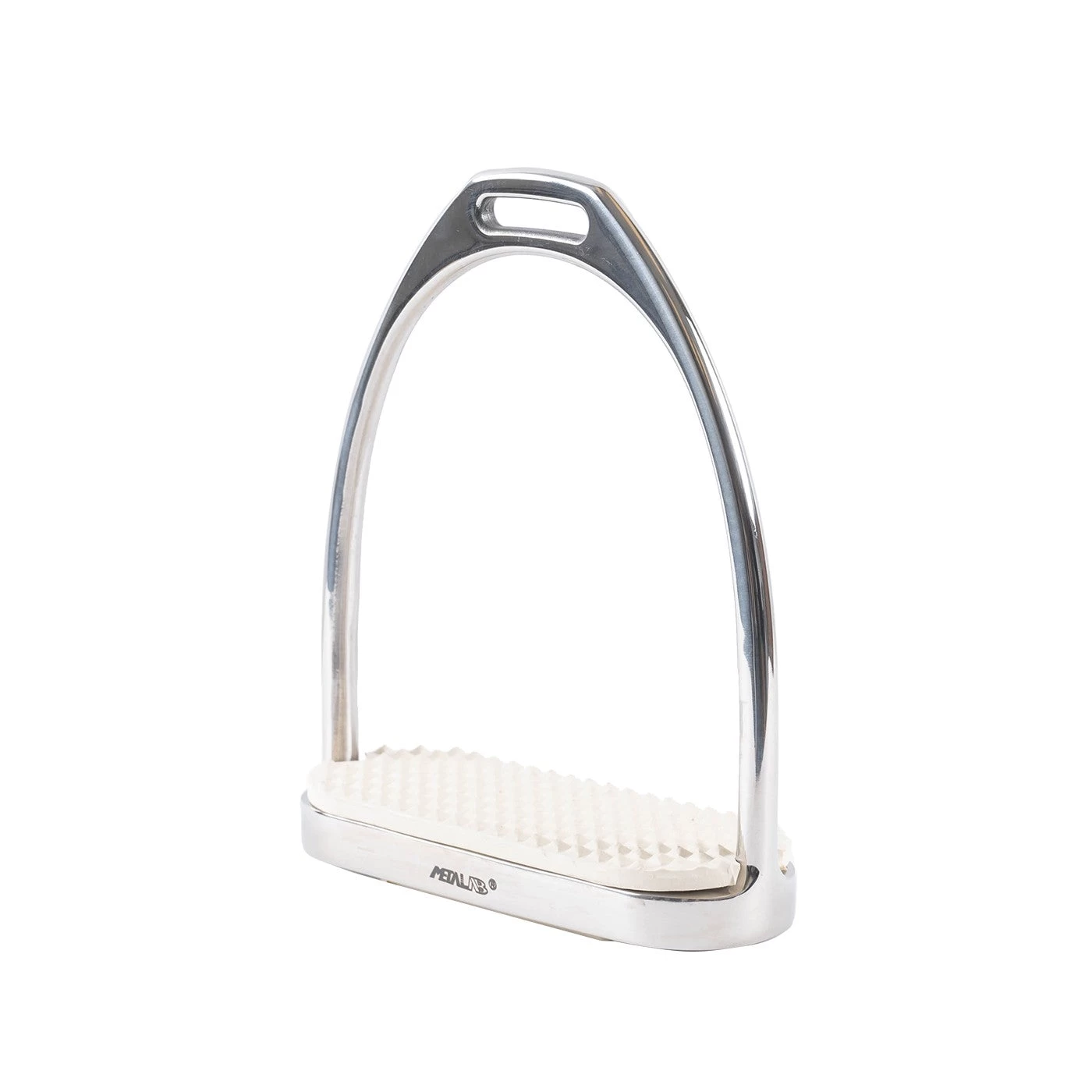 Heavyweight and durable, these stainless-steel stirrups feature a white rubber foot pad. Ideal for everyday use. Sold as a pair.
