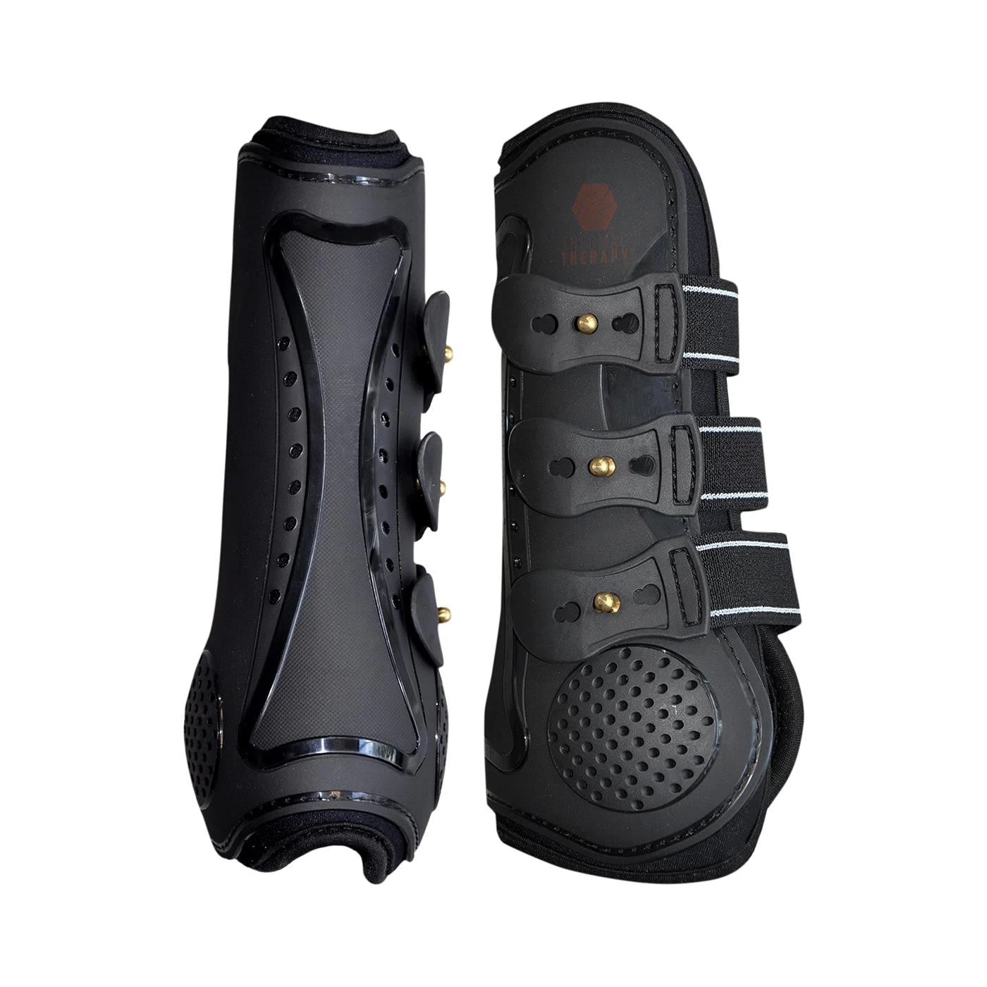 Thermal Therapy™ offers an outstanding, non-invasive and soothing technology. These open front tendon boots are made in part from a lightweight mesh material infused with ceramic powder to reflect Far Infrared (FIR) waves back to your horse’s legs. The FIR waves help loosen muscles and increase circulation in the legs, while providing tendon support and coverage during exercise. Suitable for schooling or showing.