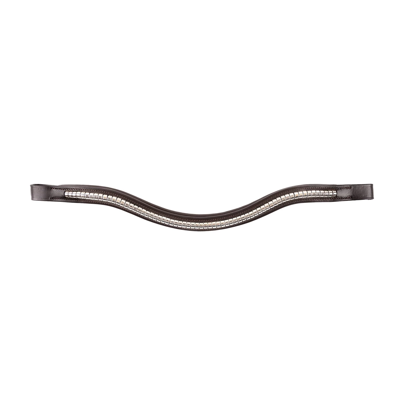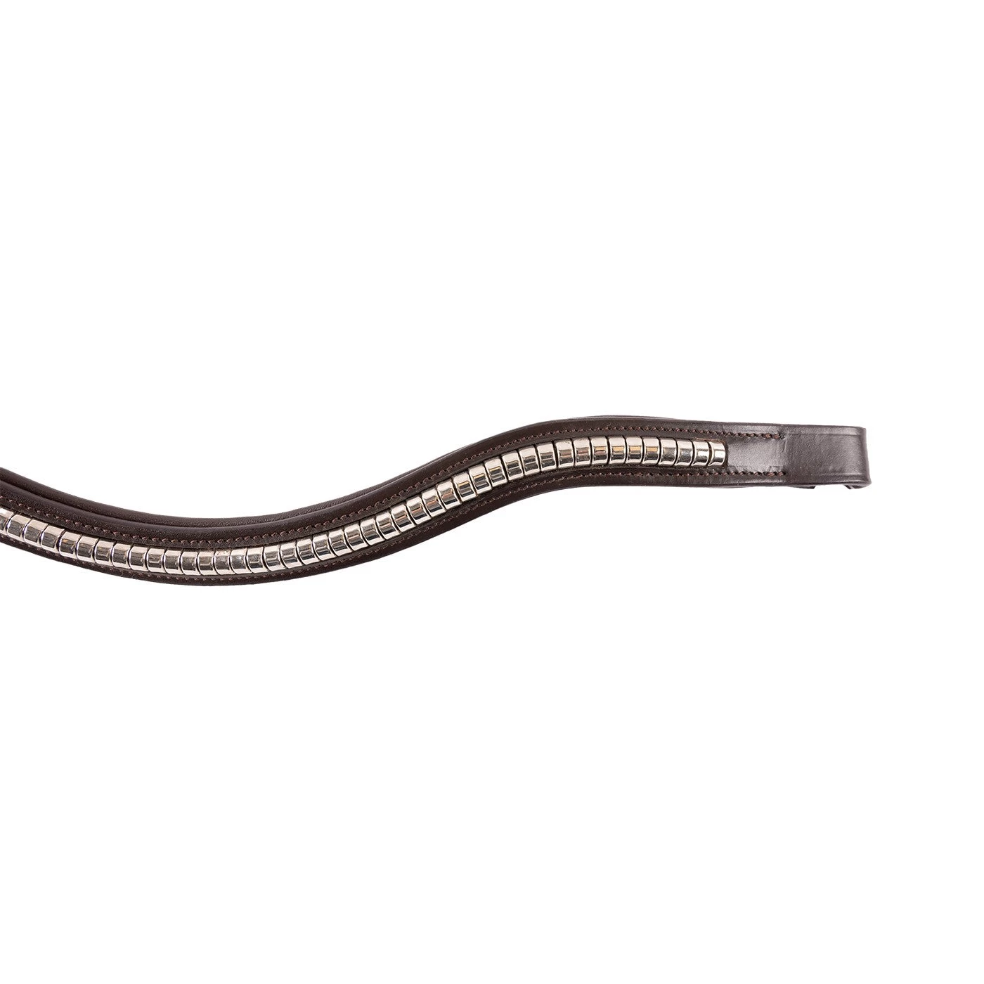 Supple, padded leather browband decorated with embedded metal studs features a beautifully contoured shape for comfort and elegant style. Easily attaches to most bridles for an eye-catching addition.