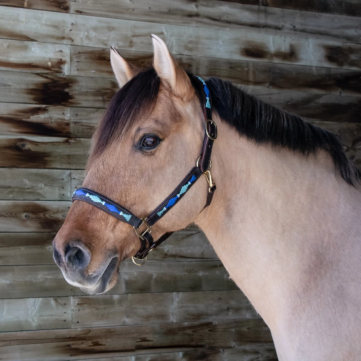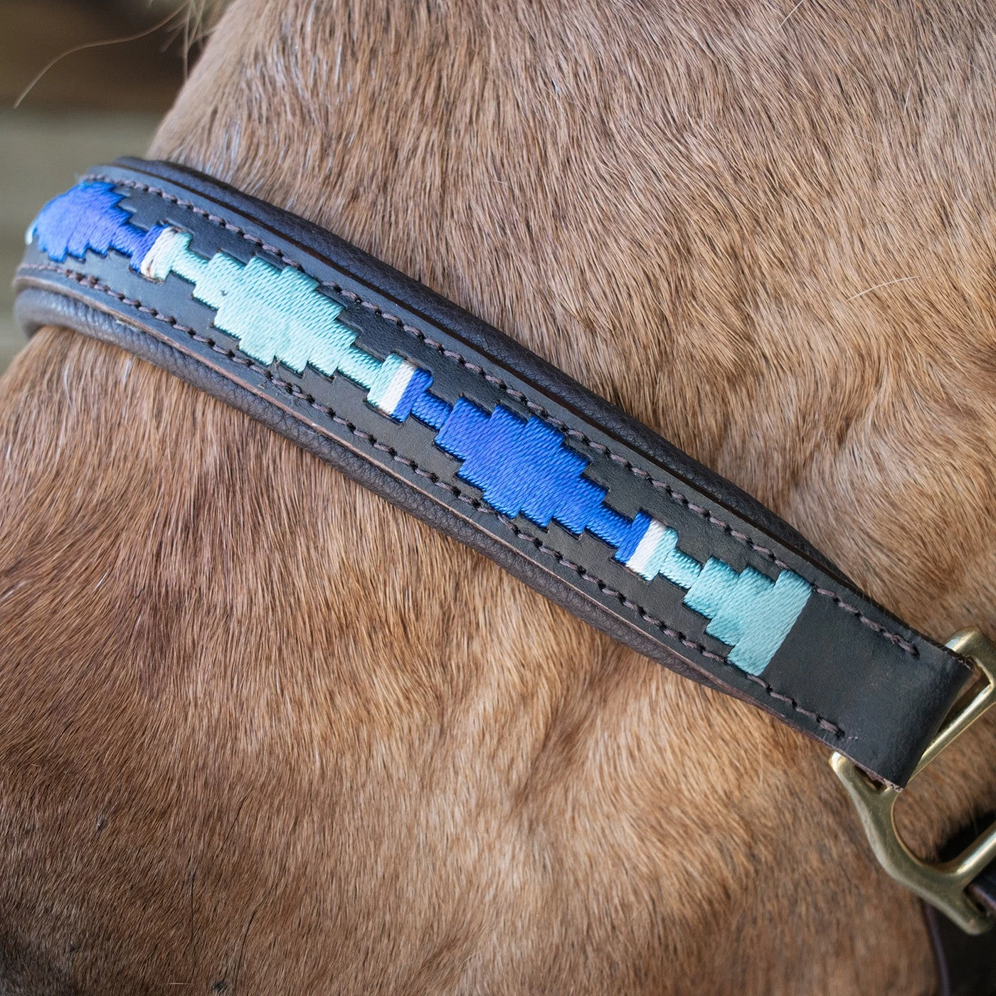 The Val du Bois Leather Polo Halter adds style to your horse’s everyday attire. Features a padded crown piece, noseband, and cheeks for added comfort, brass hardware, and a rolled throat latch. Complete with embroidery at the nose, cheek, and crown.