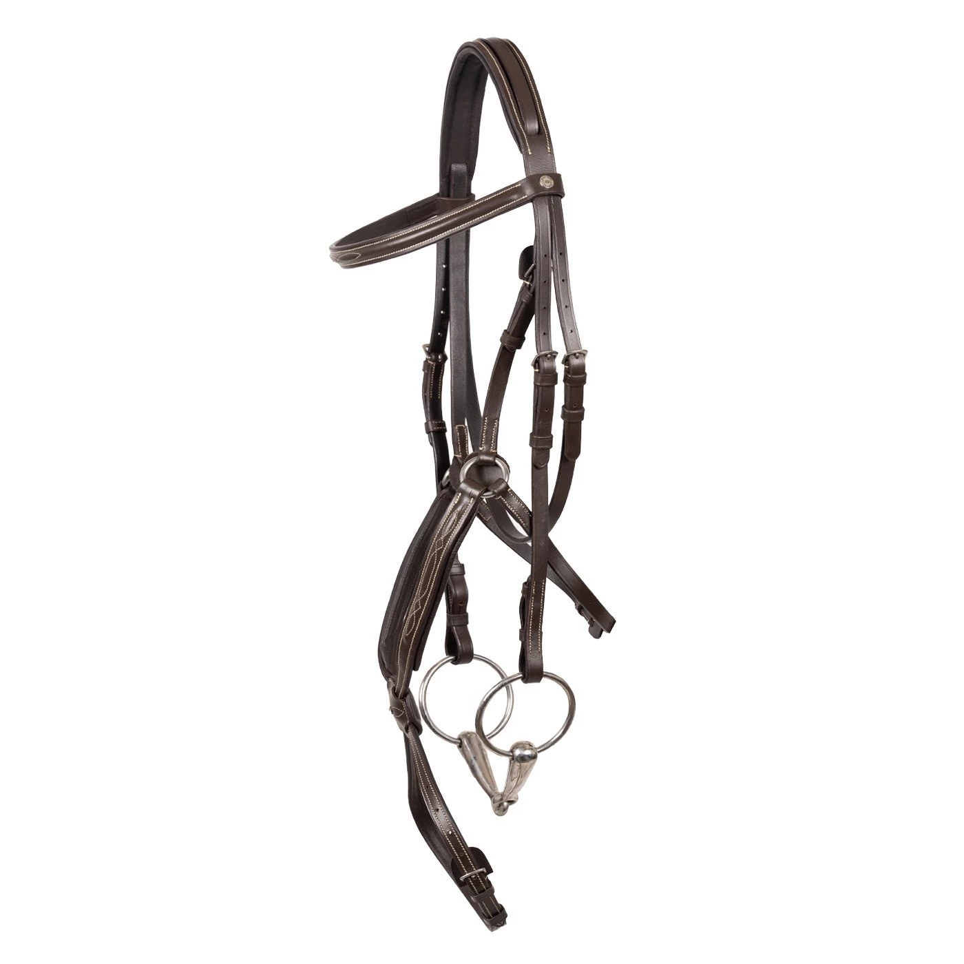 The Val du Bois Padded Fancy Stitched Figure-8 Bridle is suitable for the jumper ring or for eventing. Assembled by hand and created with burnished edging, elegant stitching and meticulous attention to detail. Features precision 12 point stitching, raised accents and matching hardware. Complete with a padded figure-8 noseband and browband for added comfort. Reins & bit not included.