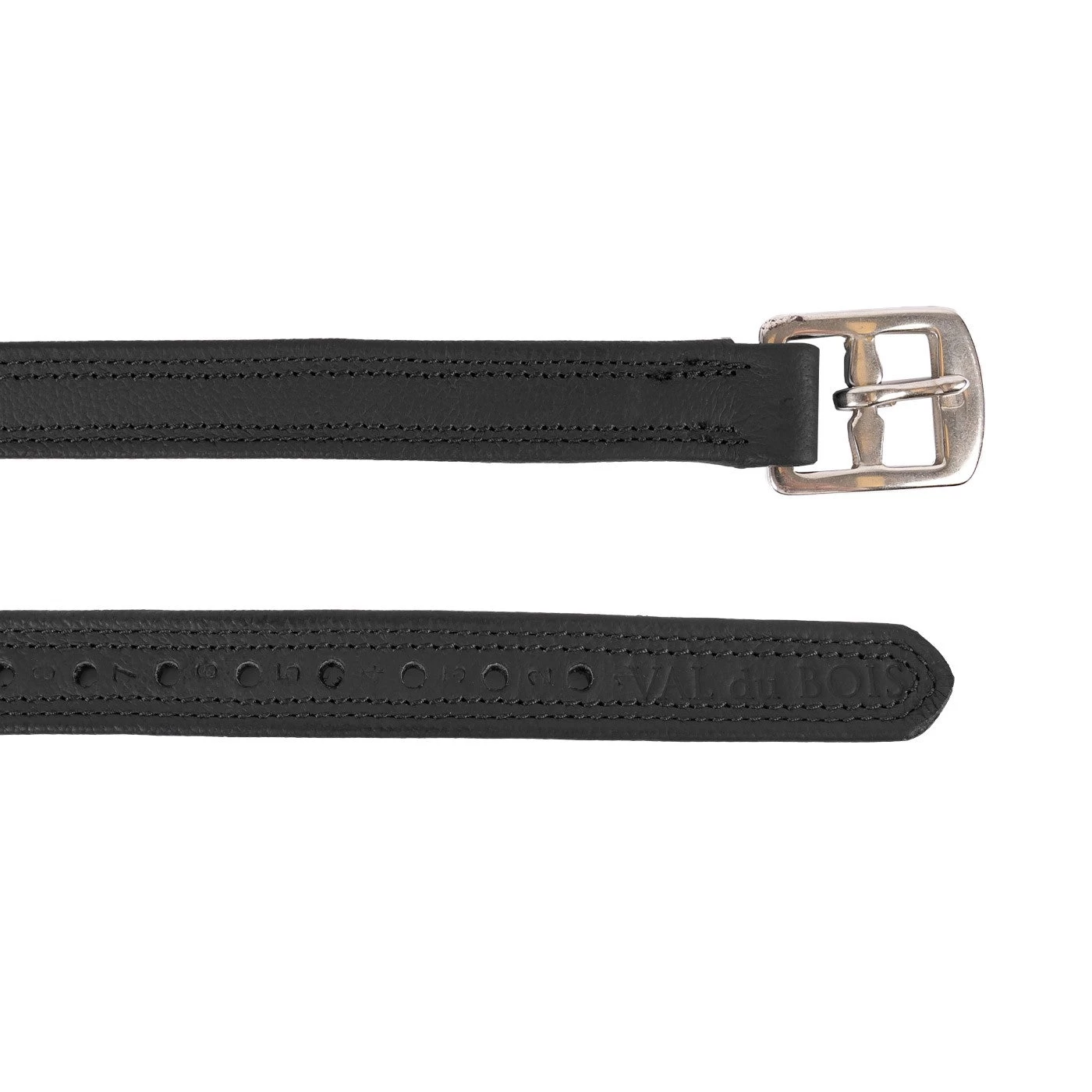 Val du Bois Stirrup Leathers are beautiful and durable, allowing them to pair well with every saddle. Made with a soft exterior for comfort and a nylon tape inside for durability and strength. Complete with double row stitching for an elegant finish with steel covered buckles. Can be easily adjusted to fit most riders with a custom fit with pre-made holes.
