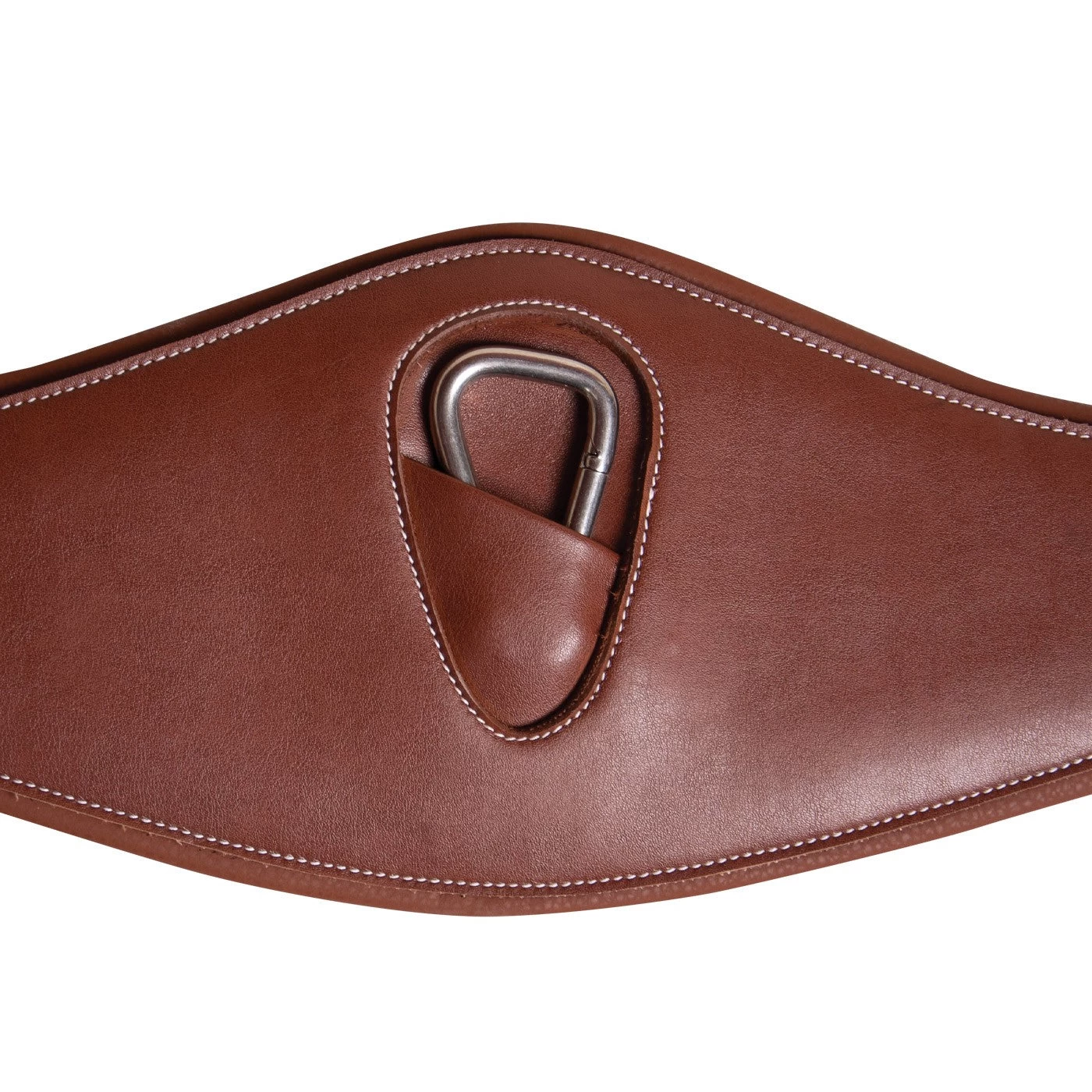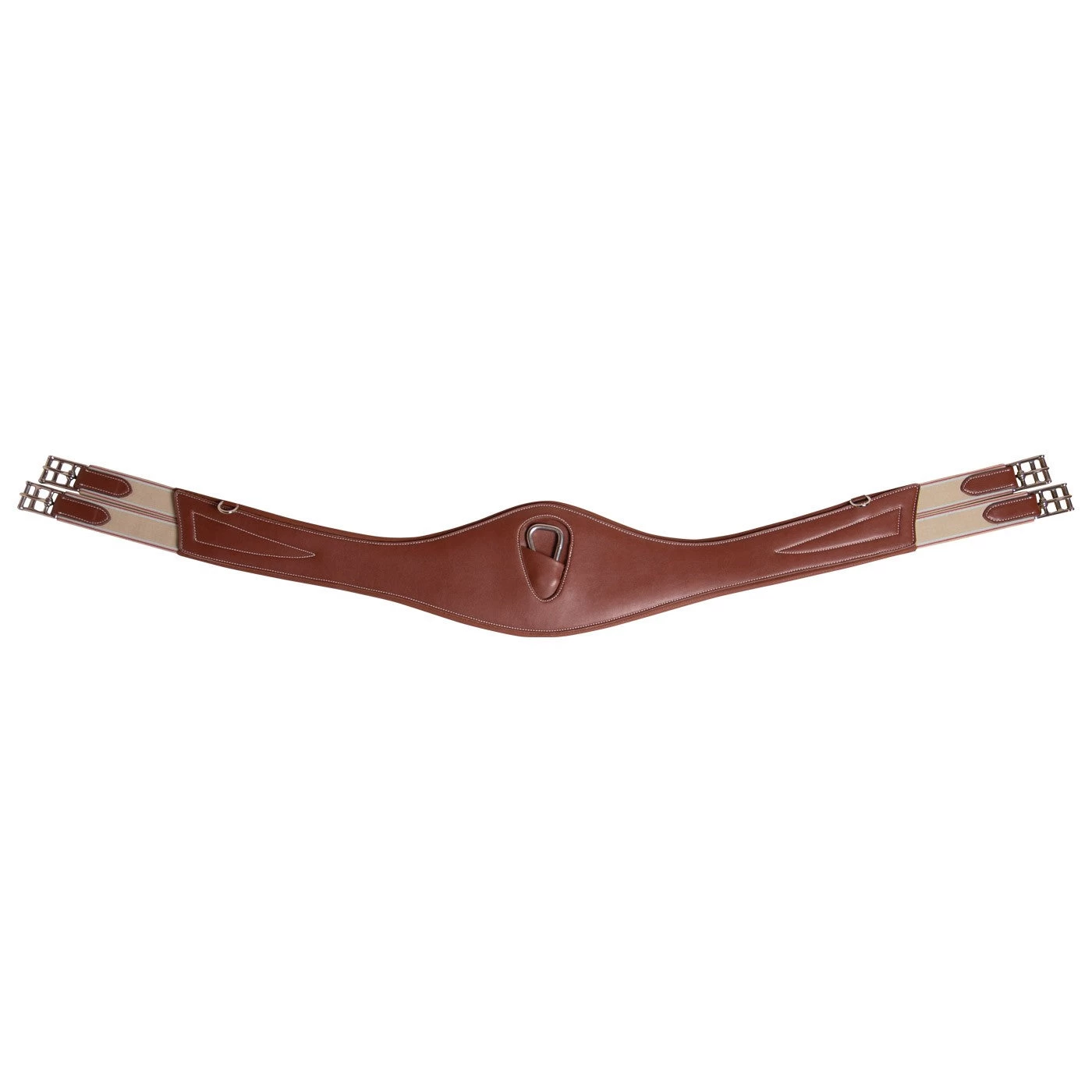 Made from a combination of natural and synthetic leather and featuring double elastics this ergonomically shaped girth is fitted with two D rings on the side for training attachments and a center clip for a martingale. Easy to clean and expertly shaped for a more comfort fit.